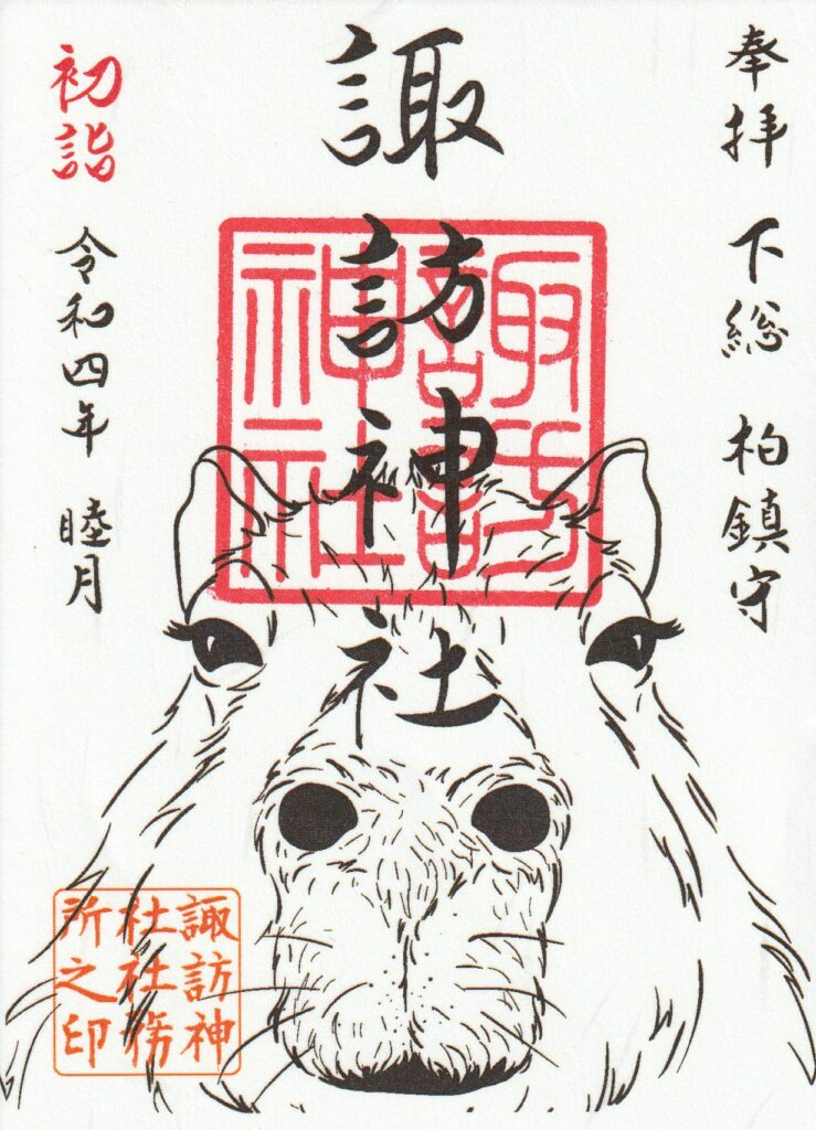 2022年1月の諏訪神社の「カピバラ」が描かれる月替わり御朱印