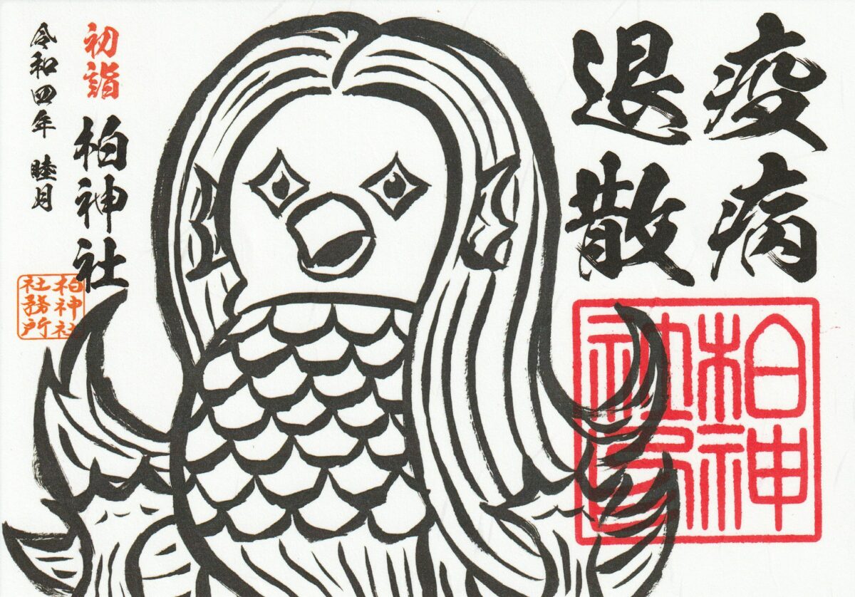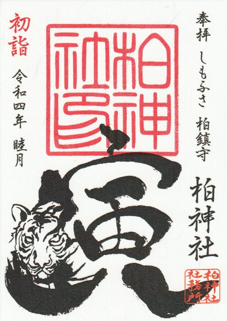 千葉県柏市に社殿を構える柏神社では毎月、数種類の月替わり御朱印が頒布されています。2022年1月には、干支の寅の他、疫病退散の願いを込めアマビエが描かれていました。翌月の2月には、天長祭、建国記念の日、鬼やらい、寅、アマビエ、マリアナ政府観光局の6種類が準備されます。