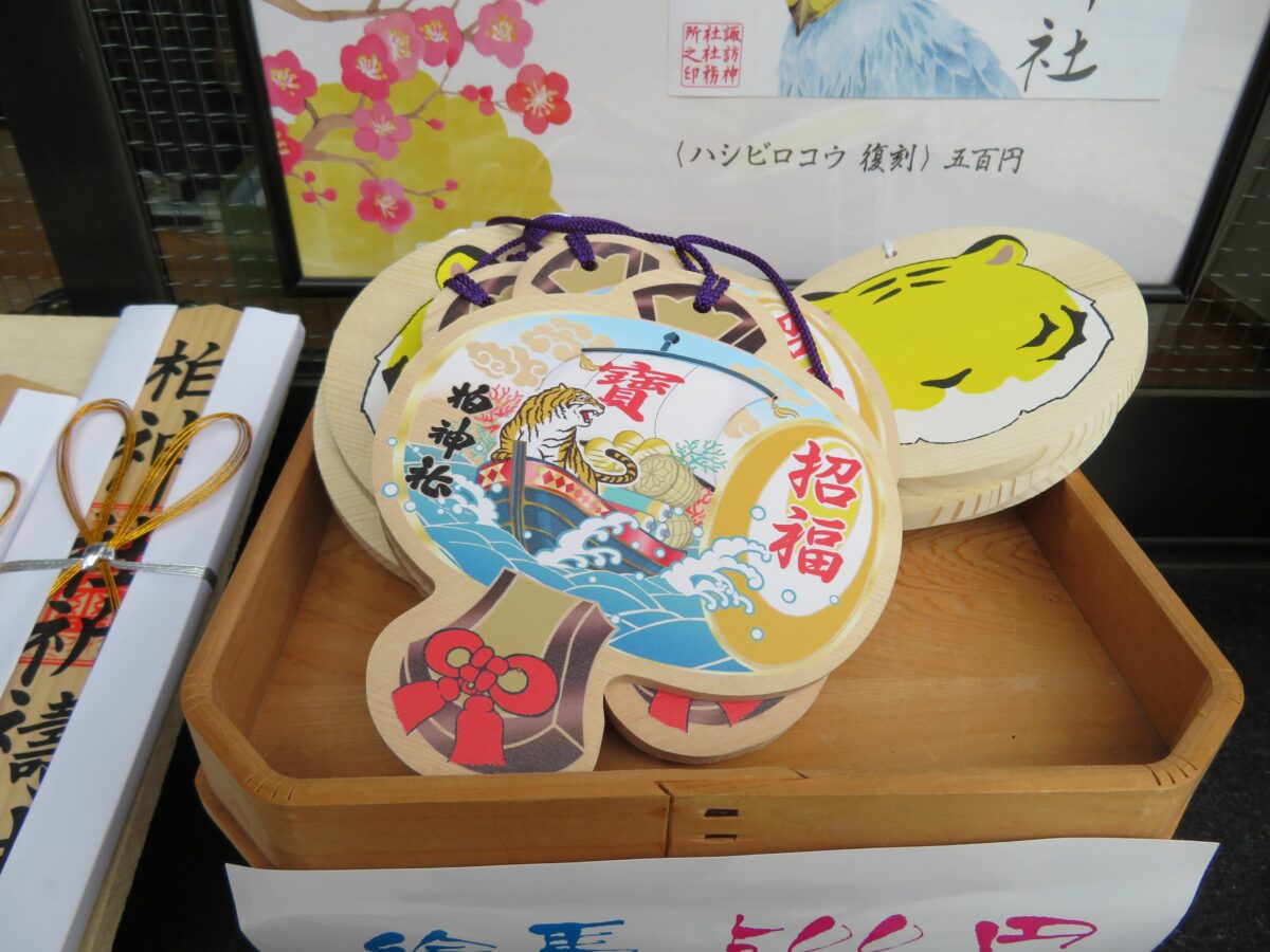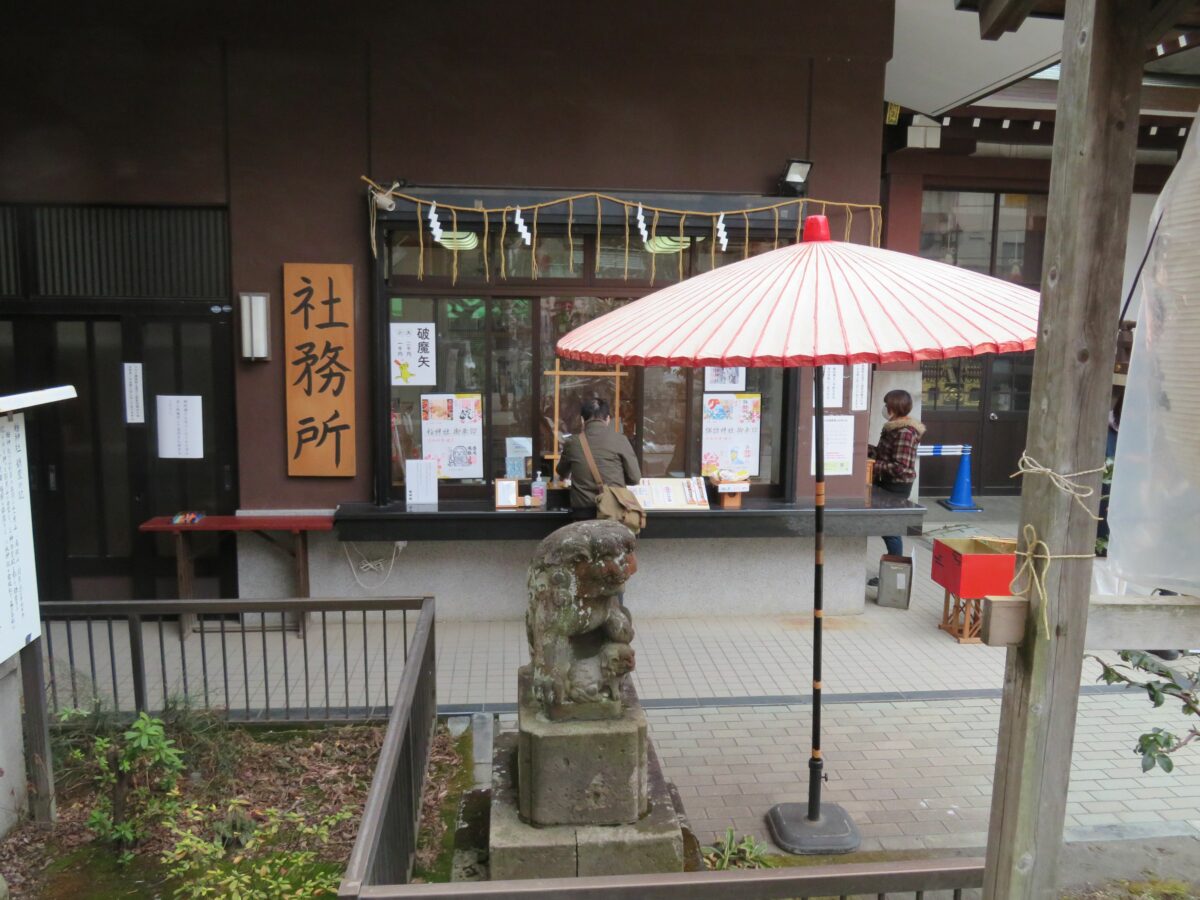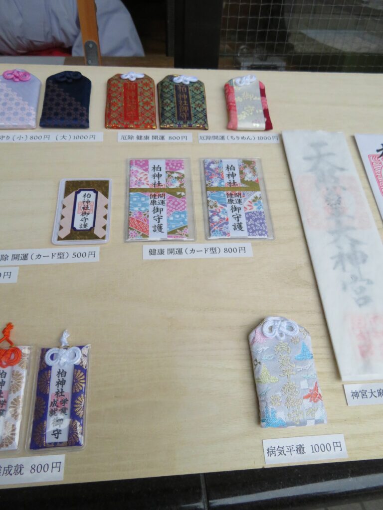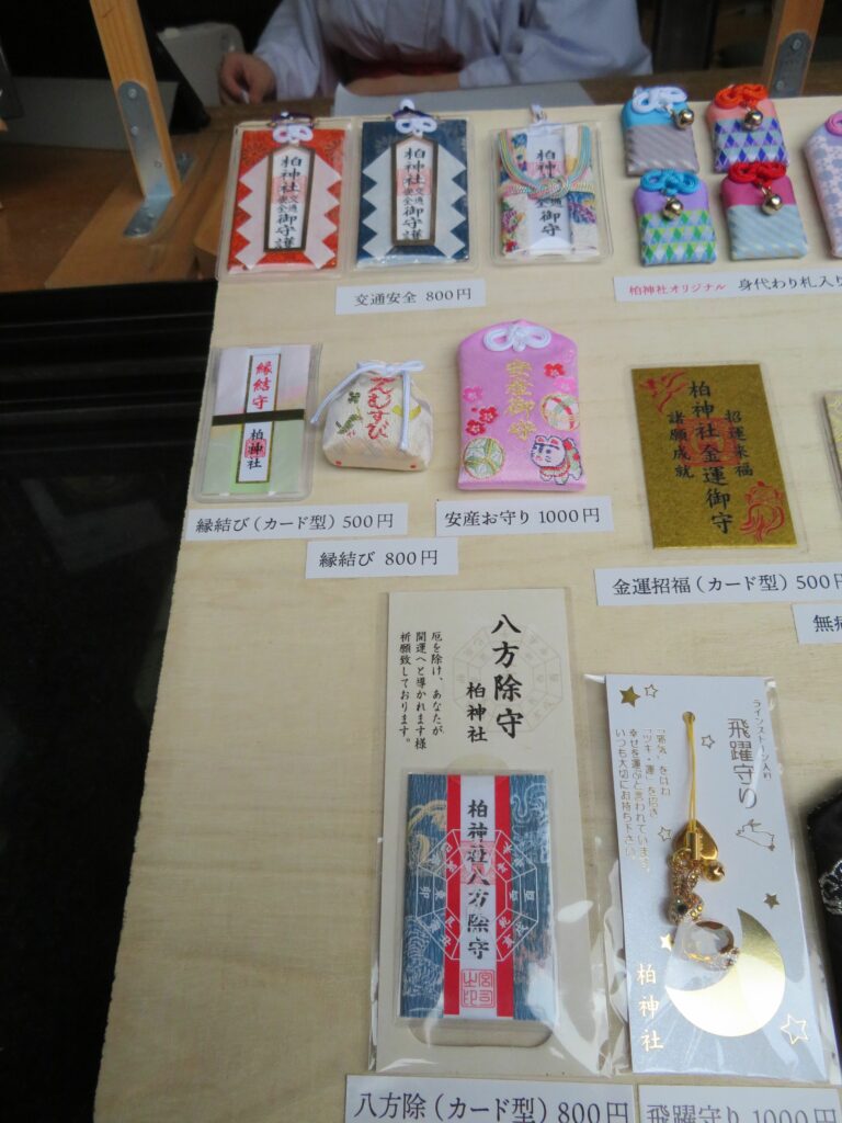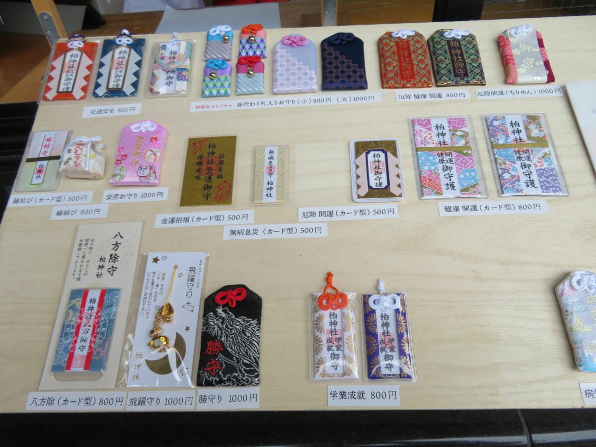 柏神社では拝殿と神楽殿に挟まれる社務所で、御朱印を頂くことができます。他にも窓口には、オリジナルの御朱印帳や、お守り、絵馬などの各種の授与品が並んでいます。