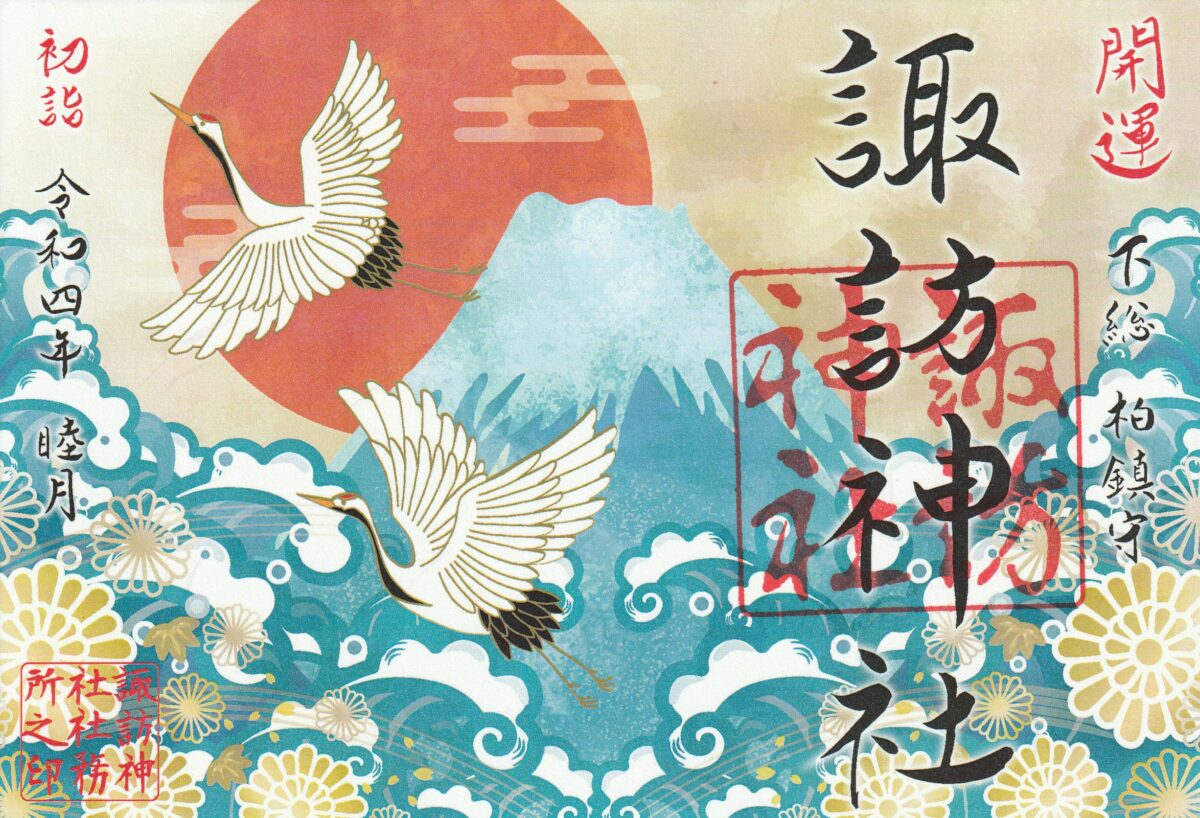 柏神社の月替わりの御朱印だけでも種類豊富ですが、柏神社から北東約600メートルに社殿を構える諏訪神社の御朱印も、同じ窓口で頂くことができます。