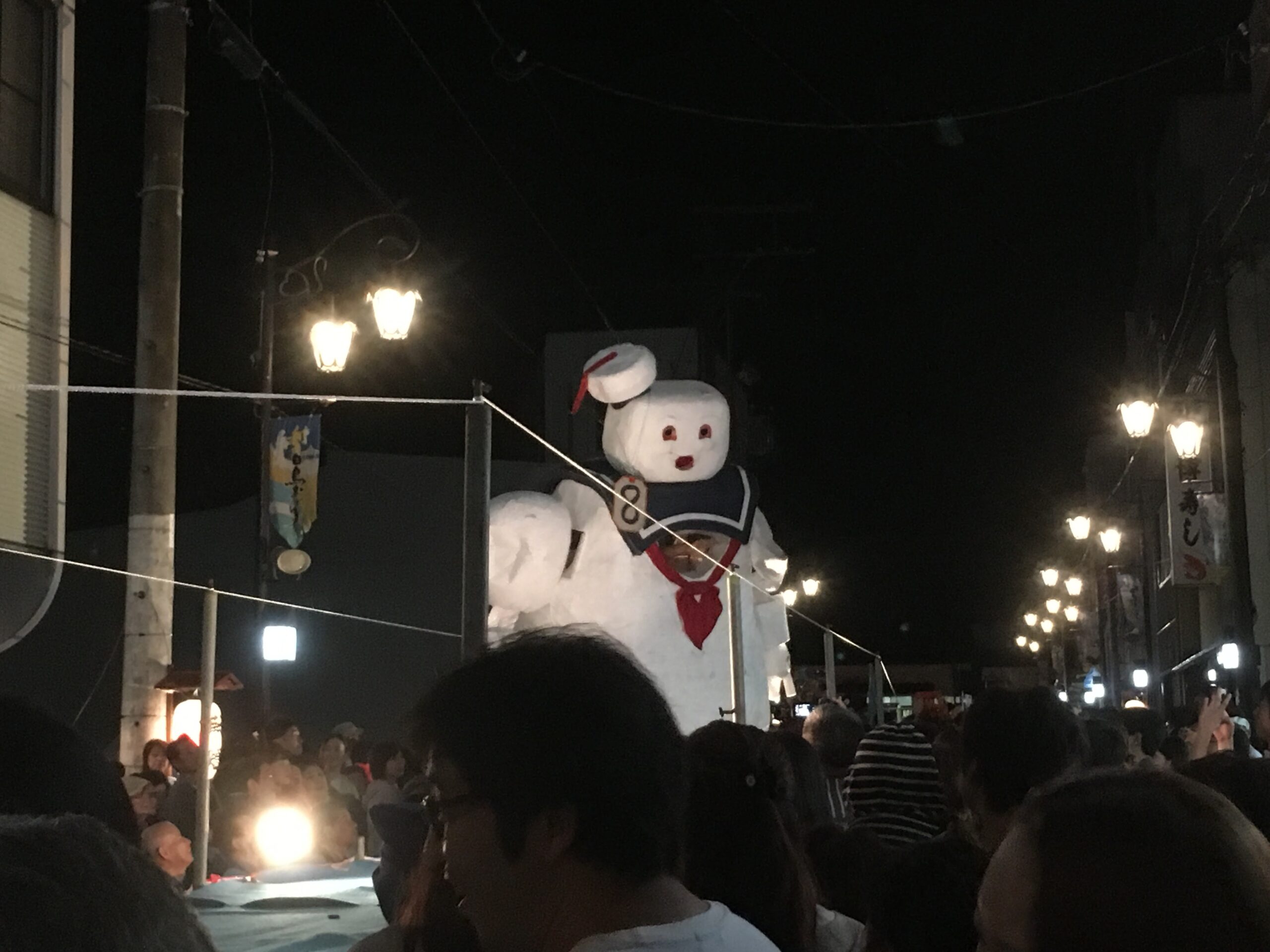 岐阜県郡上市白鳥町「変装踊りコンクール」の一幕。巨大なマシュマロマンが度肝を抜く