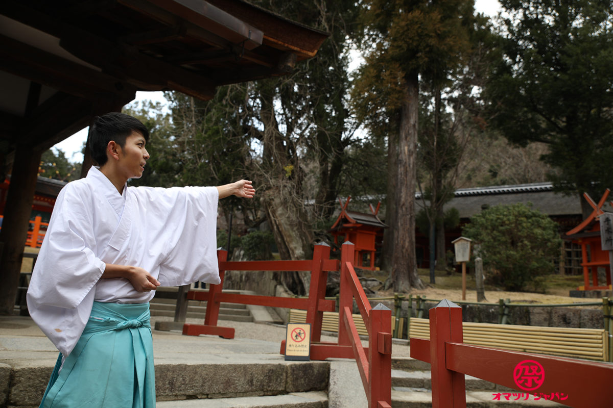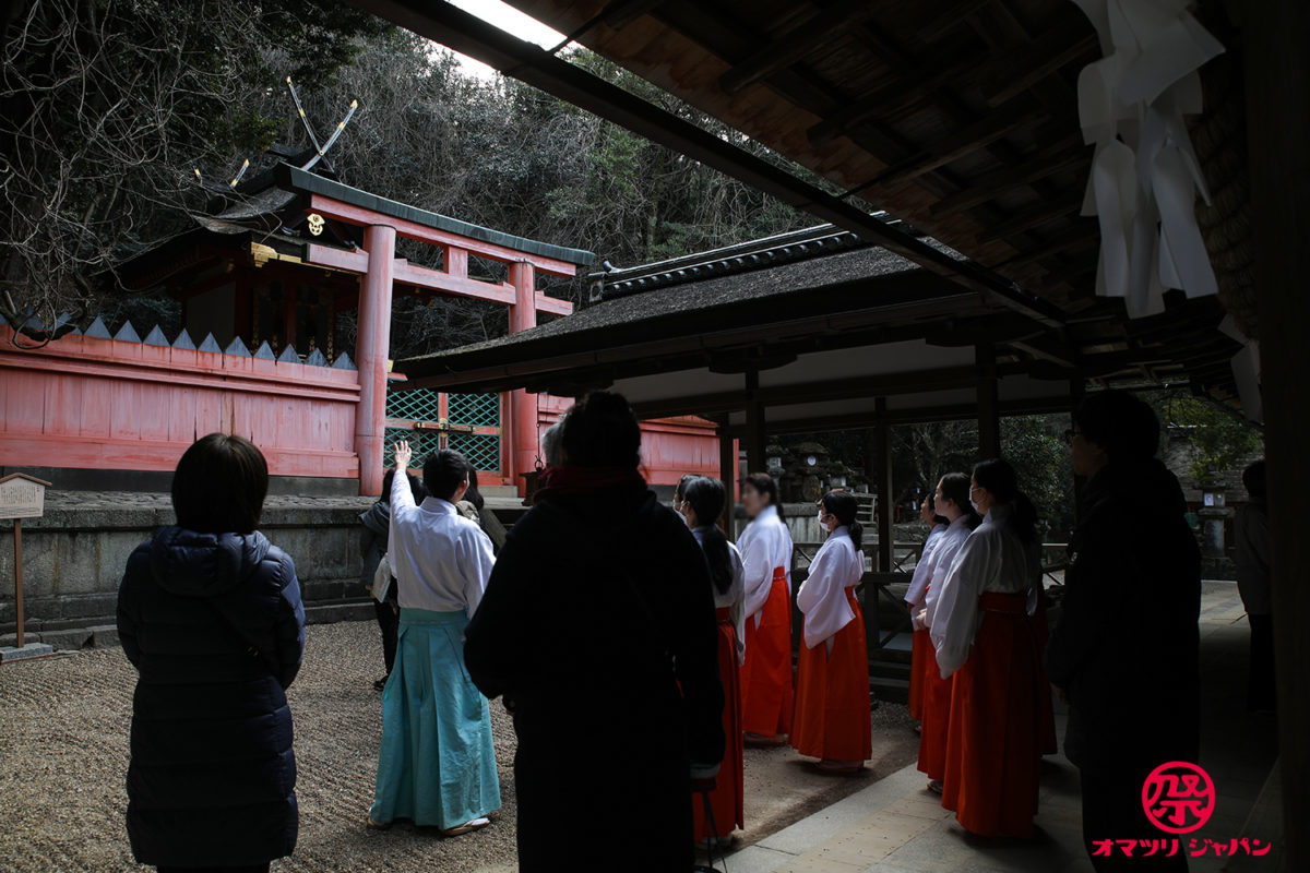 朝拝が終わると希望者は若宮神社や御蓋山などを神職の案内で巡拝できます。