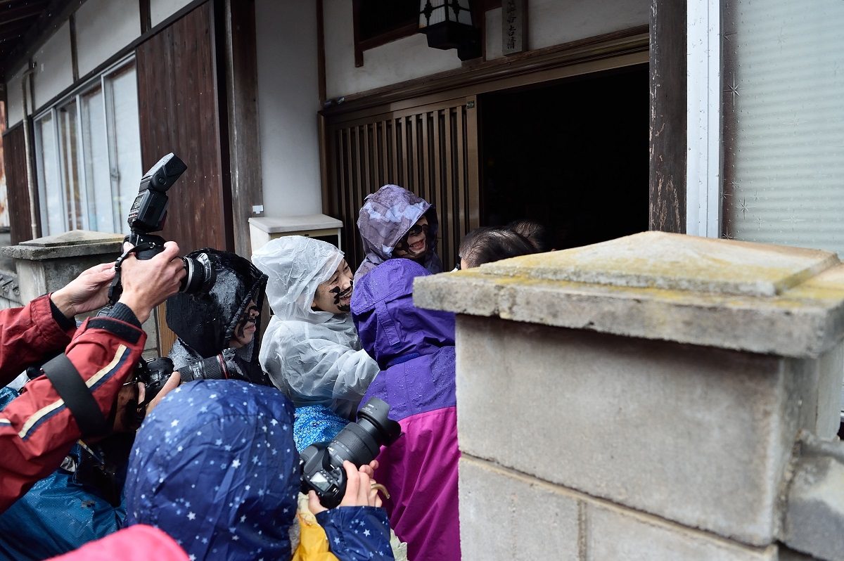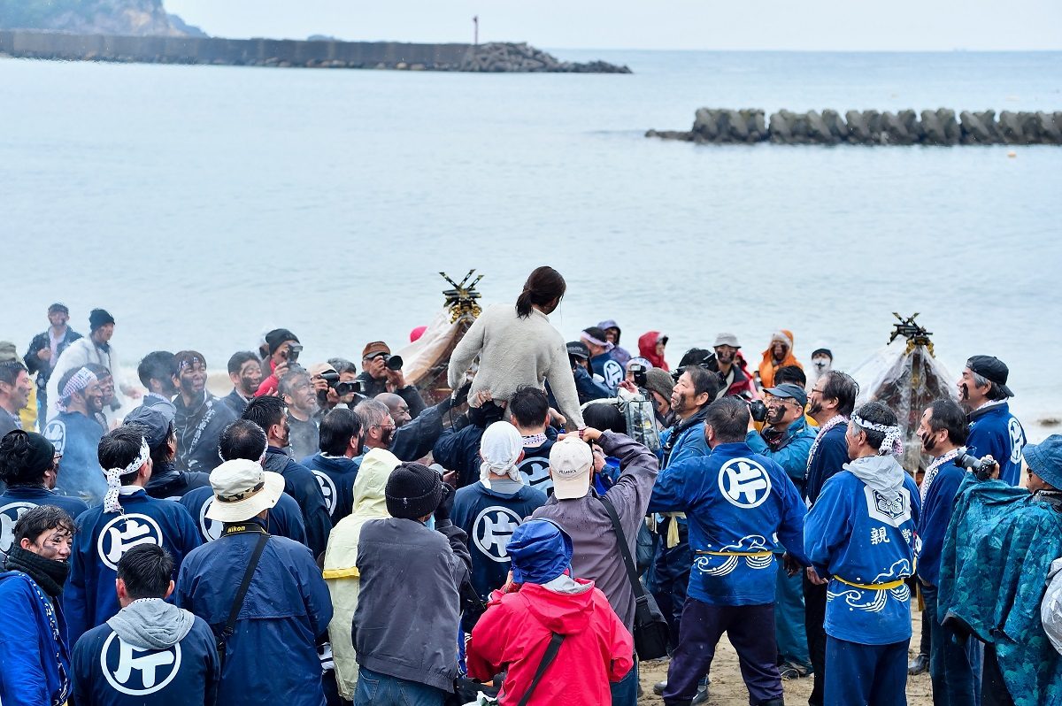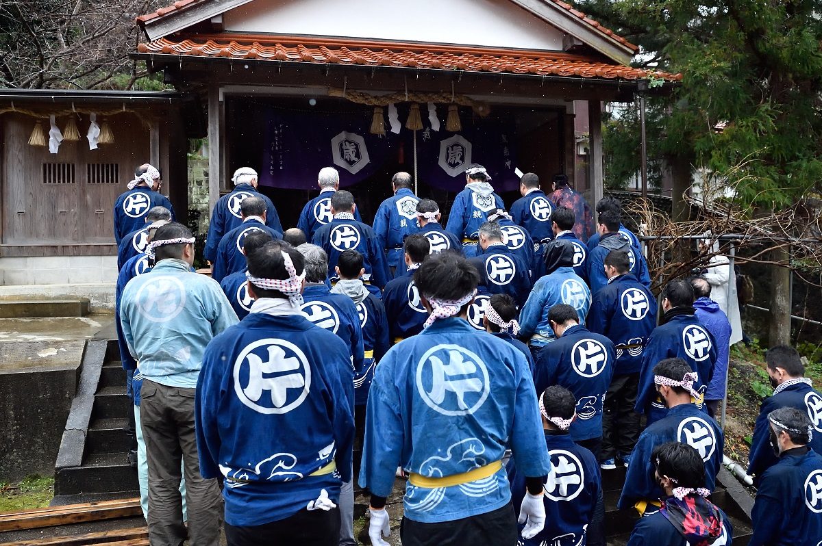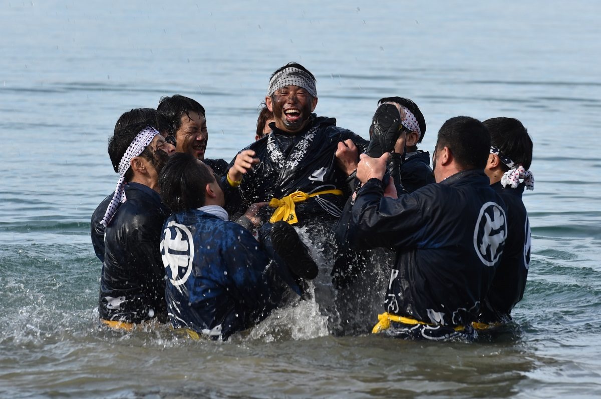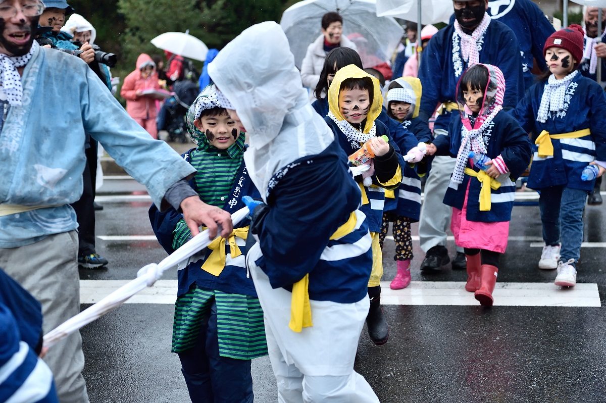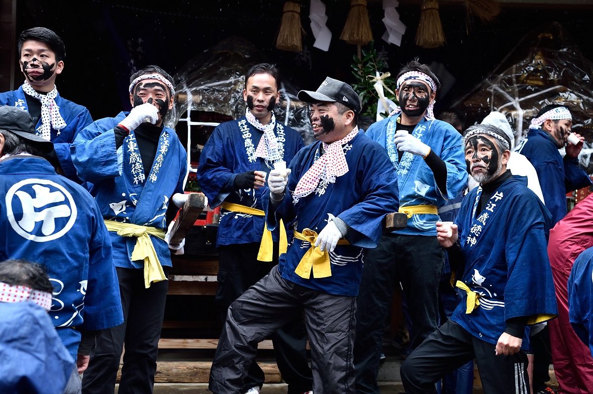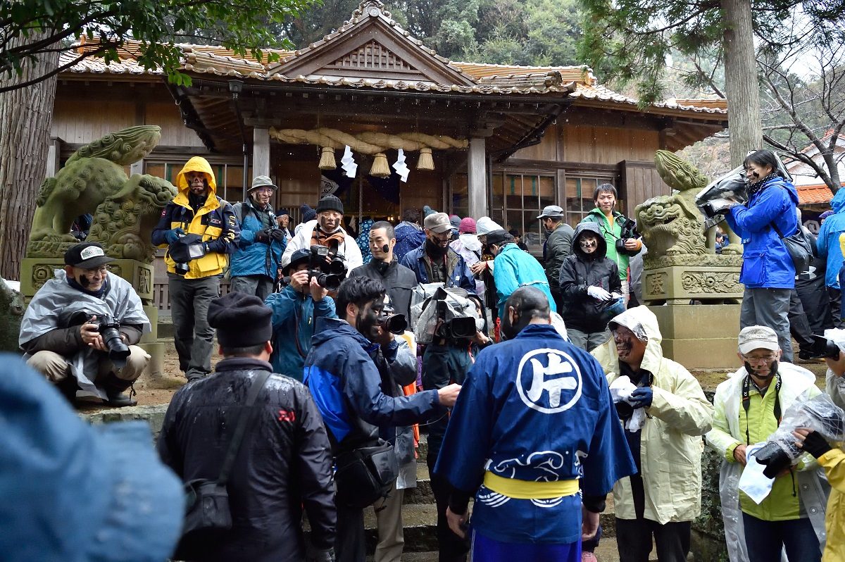 島根県松江市美保関町片江地区周辺に伝わる伝統行事。大根などに墨を含ませ、誰かれ構わず塗りつける。墨をつけられると1年間健康に過ごせるという250年近く続く伝統行事です。祭りの中心は、方結(かたえ)神社から担ぎ出された歳徳神の神輿と華やかな2本の竹で作られたトンドです。