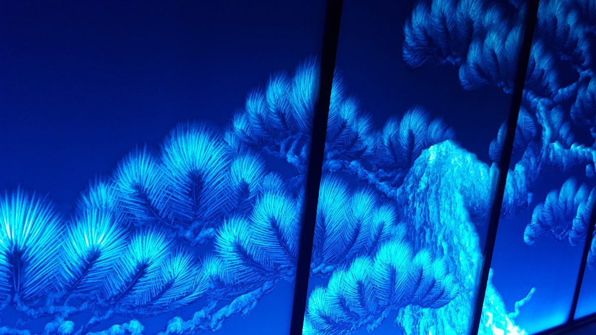 光彫りとは、作家「ゆるかわふう」氏がオリジナルで考案した、断熱材を素材としたアート作品。厚さ5センチほどの断熱材の厚みを変えて彫ることで、光をあてた時に、薄いところがより明るく、厚いところは暗い色になるよう陰影を作り出すことで表現します。