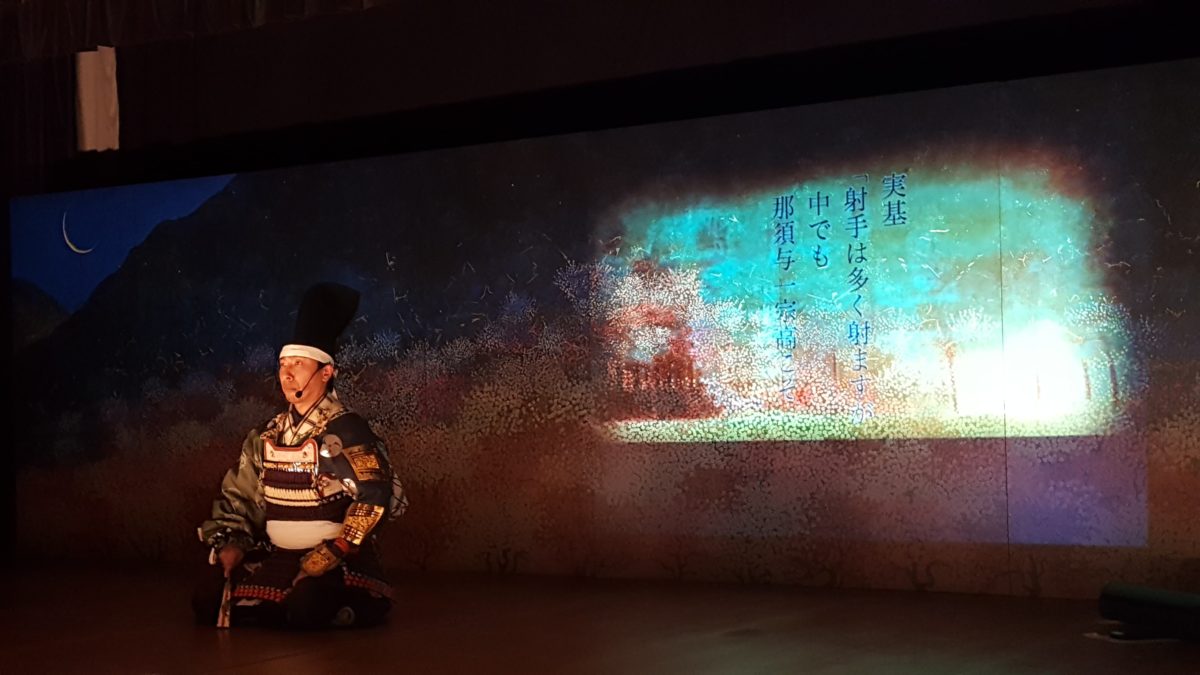 最後にいよいよ「奏×狂言」の時間となりました。お題は「平家物語」より「那須与一」のあの有名な場面です。「船の上の扇を浜辺から射る」というものですね。