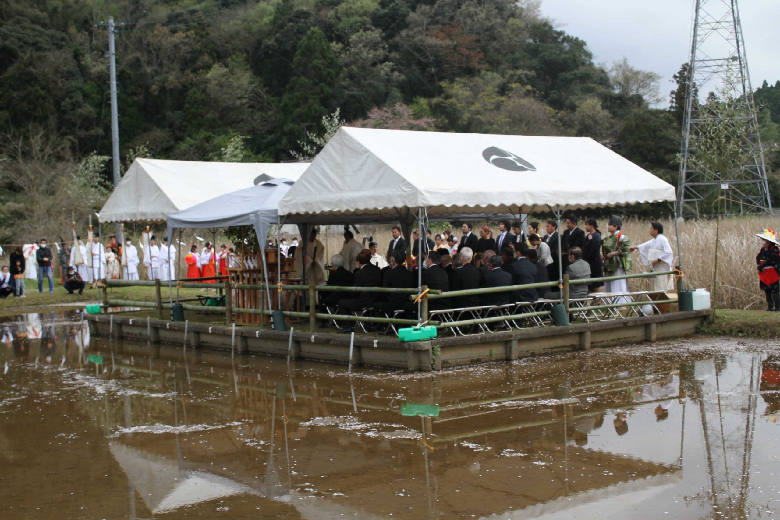 この記事では、4月2日(日)に執り行われた田植式の様子をお届けします。