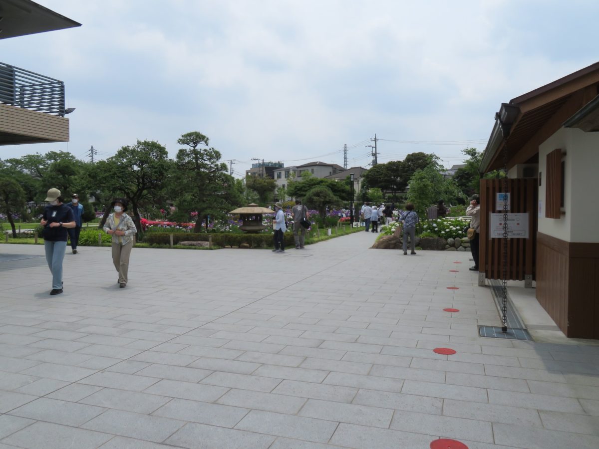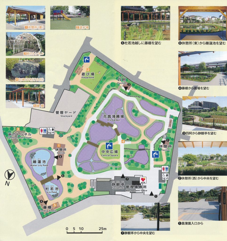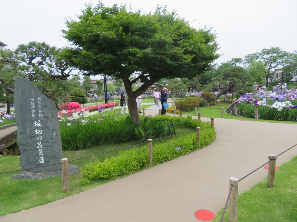 「堀切菖蒲園」の北側の入口から園内に入ると東正面に中央広場があり、その周囲を「花菖蒲園場」が取り囲んでいます。