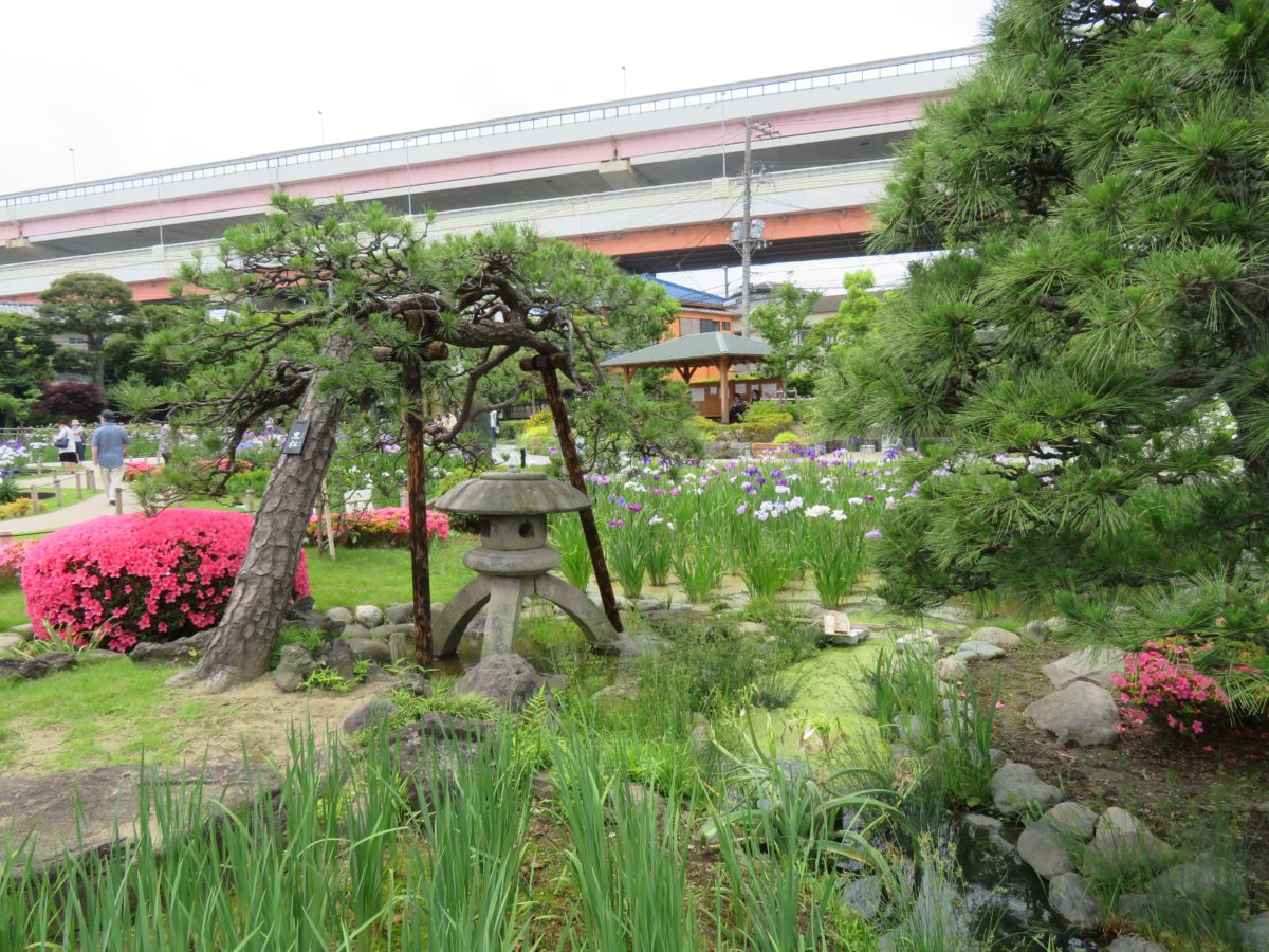 「堀切菖蒲園」の南部から眺める「花菖蒲園場」