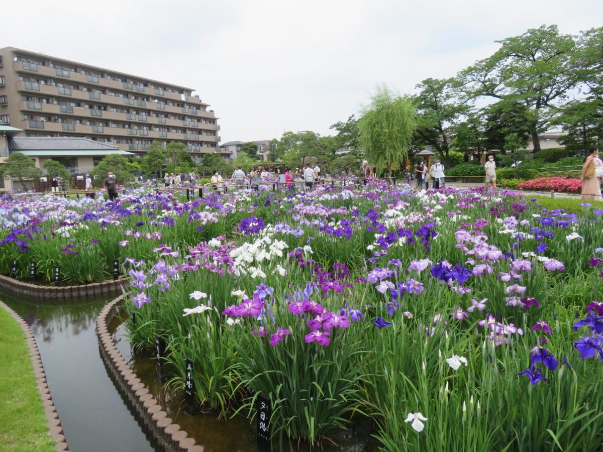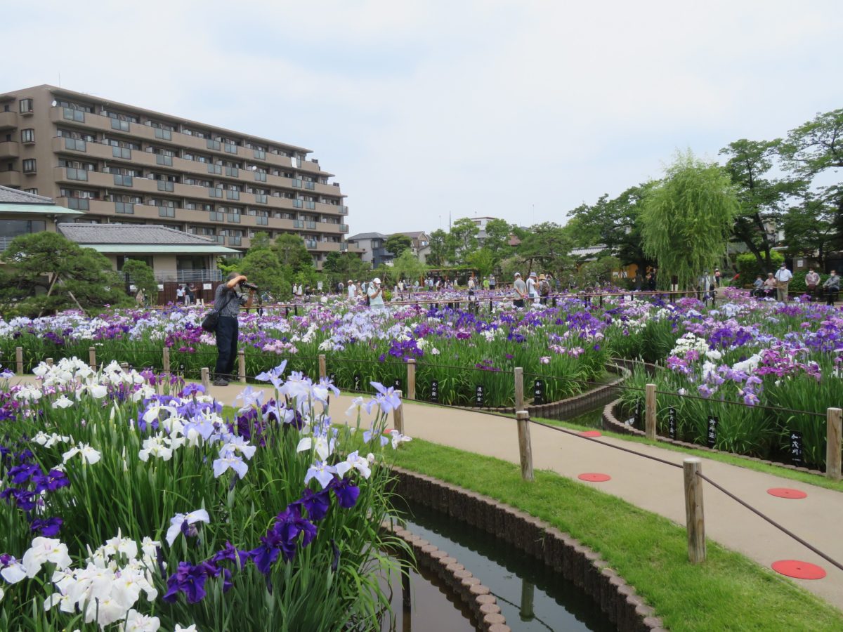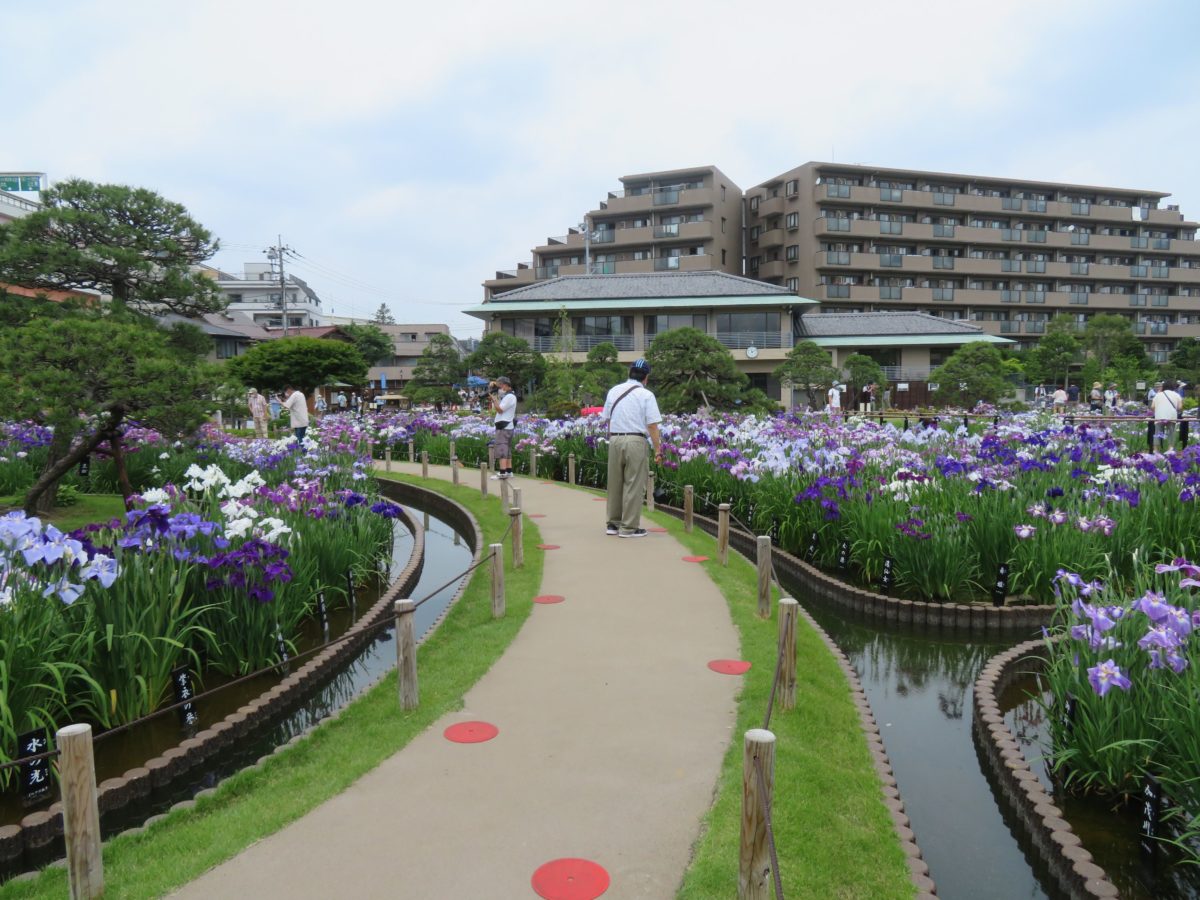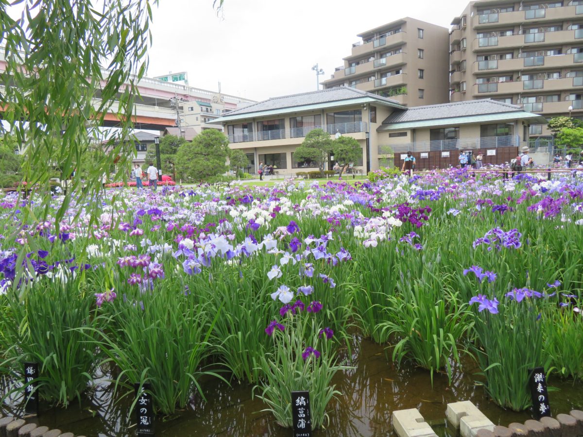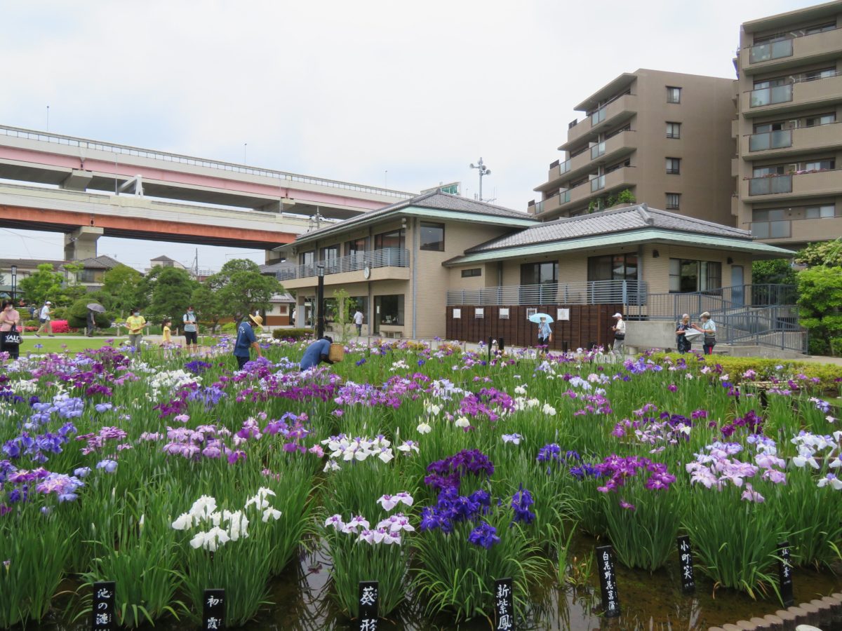「堀切菖蒲園」の西部から眺める「花菖蒲園場」