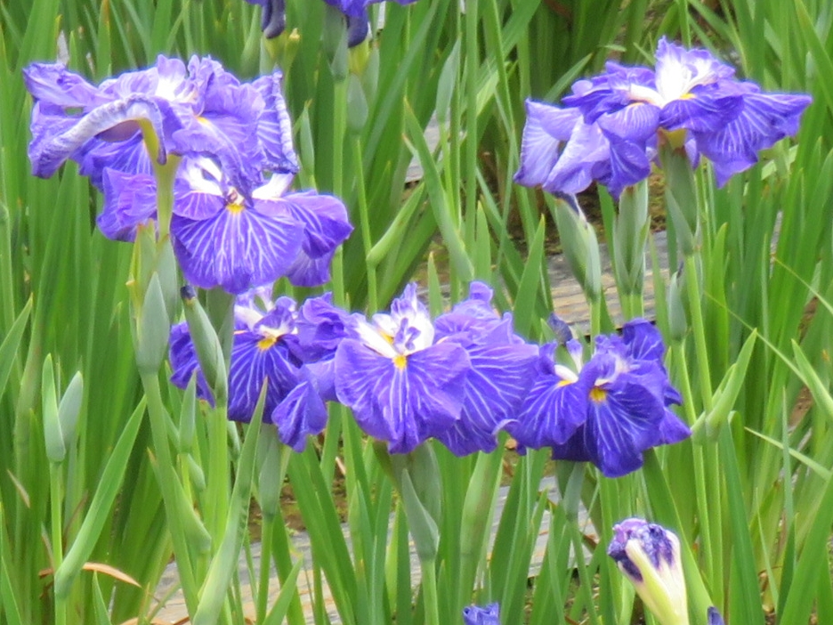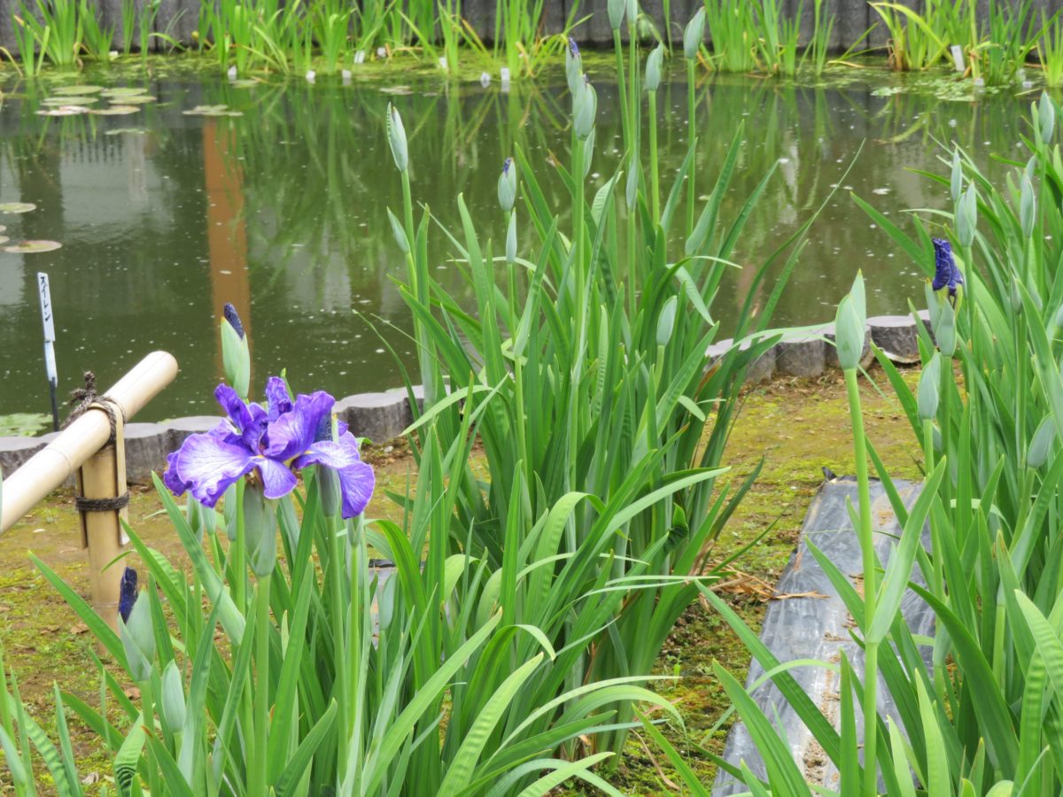 休憩所の東の睡蓮池の周囲で大切に栽培される「菖翁花」