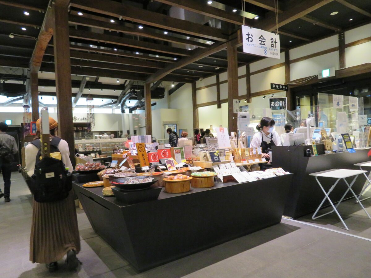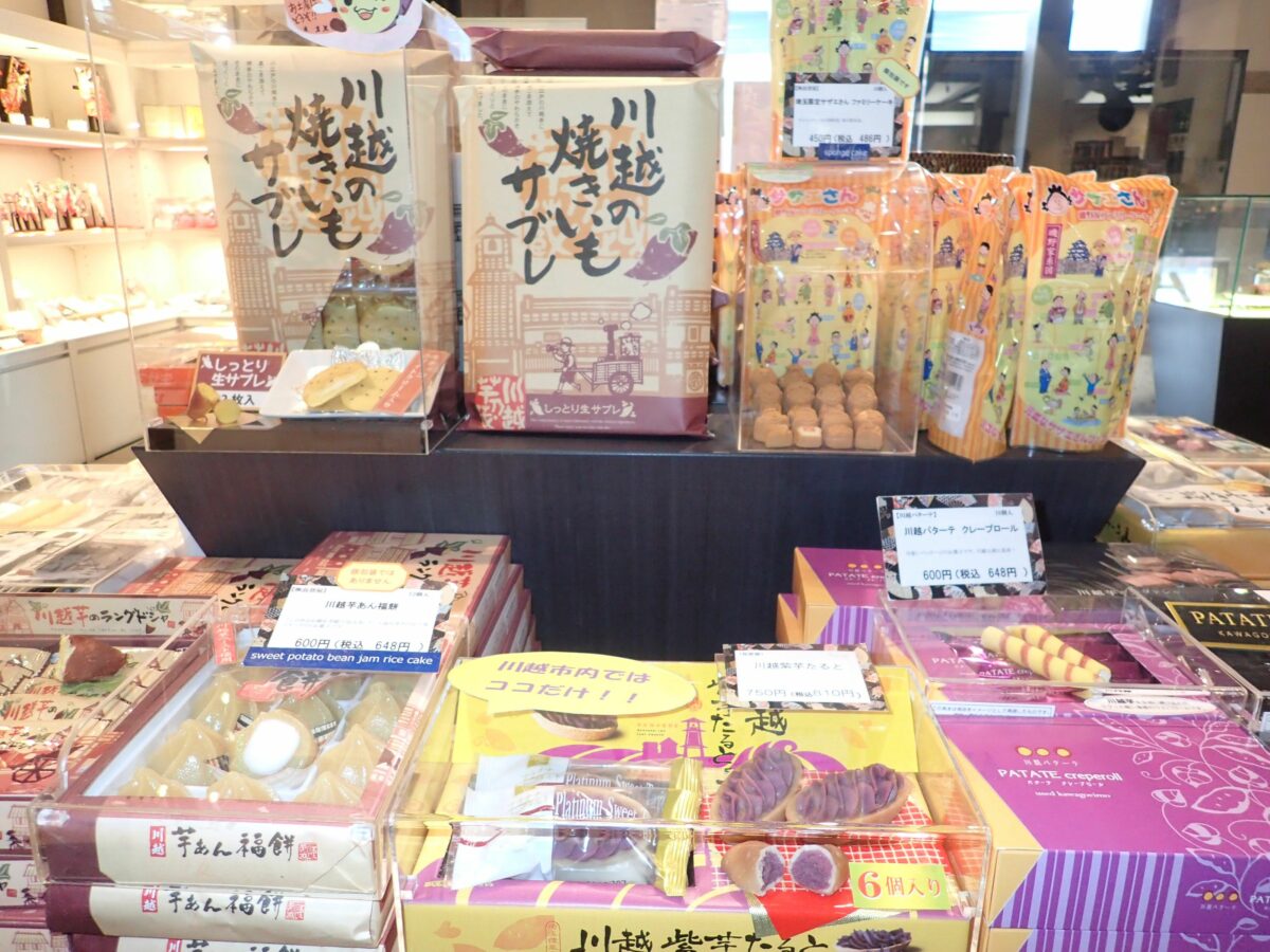 おみやげ処の明治蔵の店内に並ぶ川越銘菓