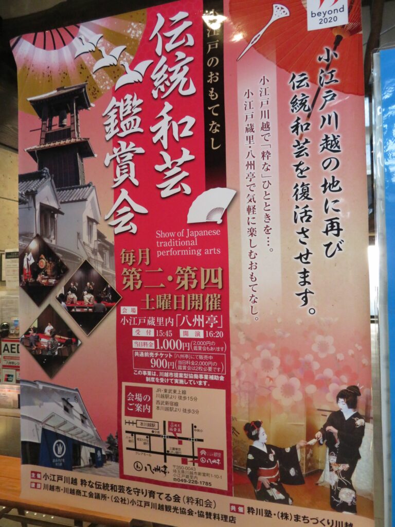埼玉県川越市は市街地に蔵造りの街並みを残し小江戸と呼ばれています。川越まつりの伝統行事が受け継がれるばかりでなく、民謡などの伝統芸能も大切に保存されているのです。産業観光館の「小江戸蔵里」に設けられる「まかない処大正蔵」では、毎月第2、第4土曜日に「伝統和芸鑑賞会」が開催されています。