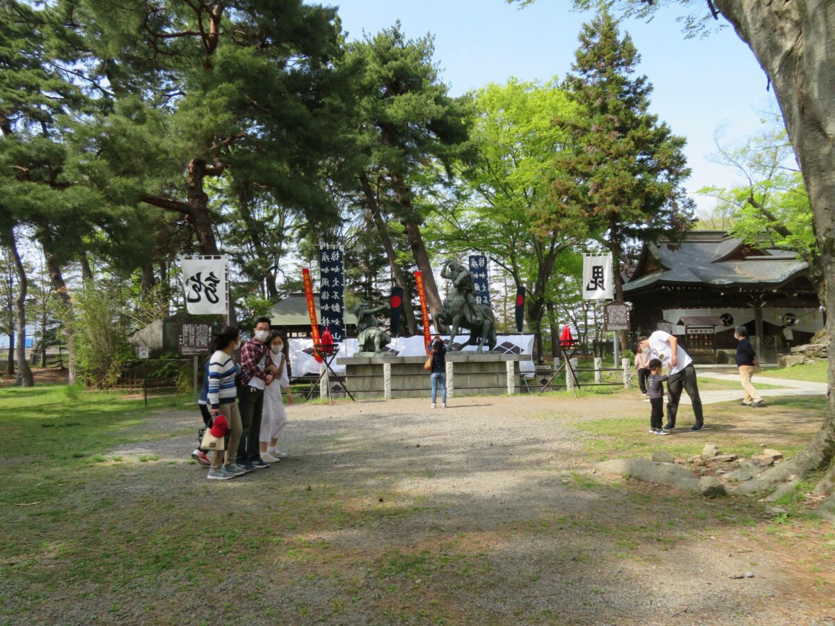 本殿の南西に設置される謙信・信玄の一騎討ちの像