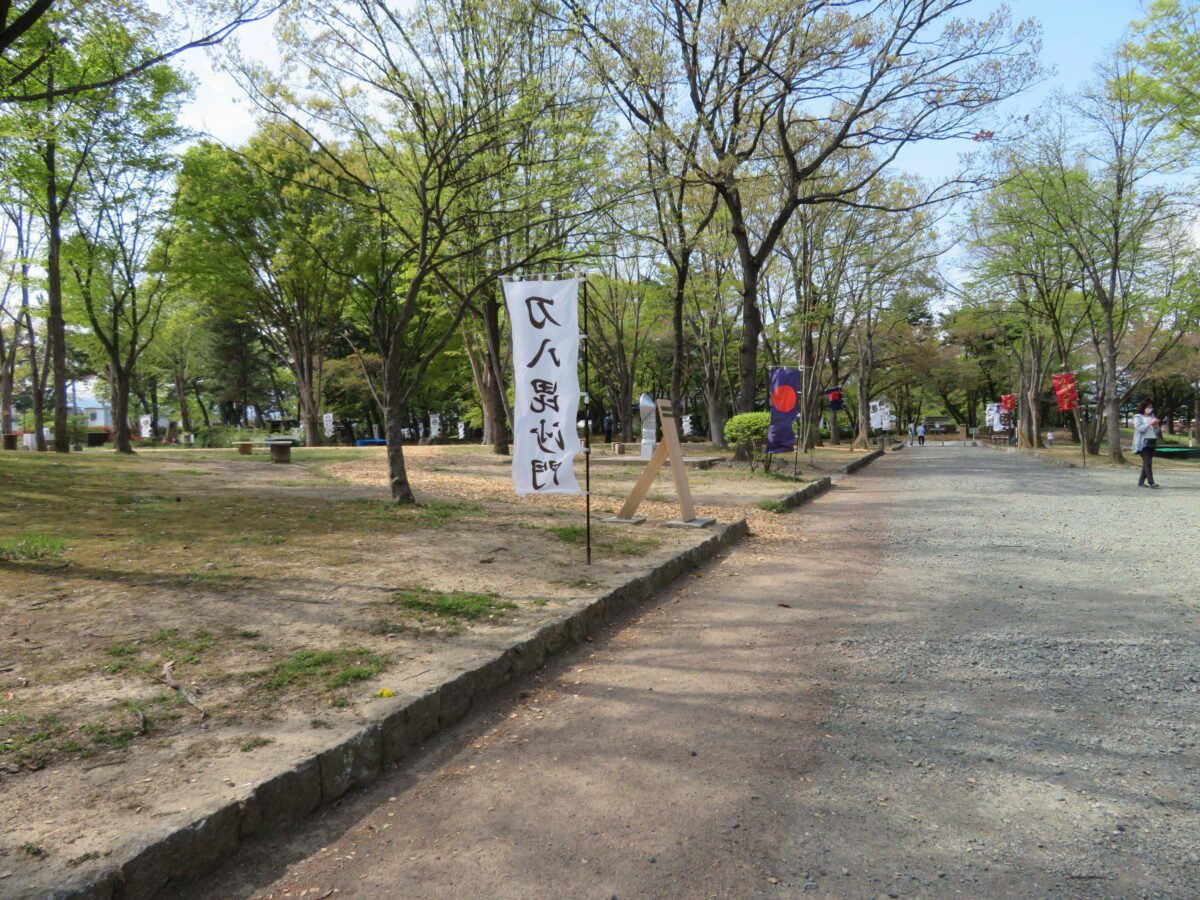 川中島古戦場八幡社は豊かな自然に囲まれ、川中島古戦場史跡公園として整備され、合戦のときの本陣なども復元されています。園内には歴史感が漂うばかりでなく、四季によって異なる表情を見せてくれます。例年4月の「川中島古戦場三太刀まつり」では桜のライトアップ・ぼんぼりの点灯などが行われます。「三太刀」は謙信と信玄の一騎討ちのとき、謙信は3度斬りつけ、信玄の軍配団扇7つの傷が残ったという伝説に基づくイベントも見物です。また、10月には「川中島古戦場まつり大花火大会」では、夜空が大輪の花で彩られます。