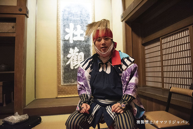演舞後の控え室では、若手の担い手の方に、今日の感想や現在の取り組み、今後やりたいことなどについて伺うことができました。まずは保存会を取りまとめる調整役として力を発揮されている高橋幸宏さん(32)です。