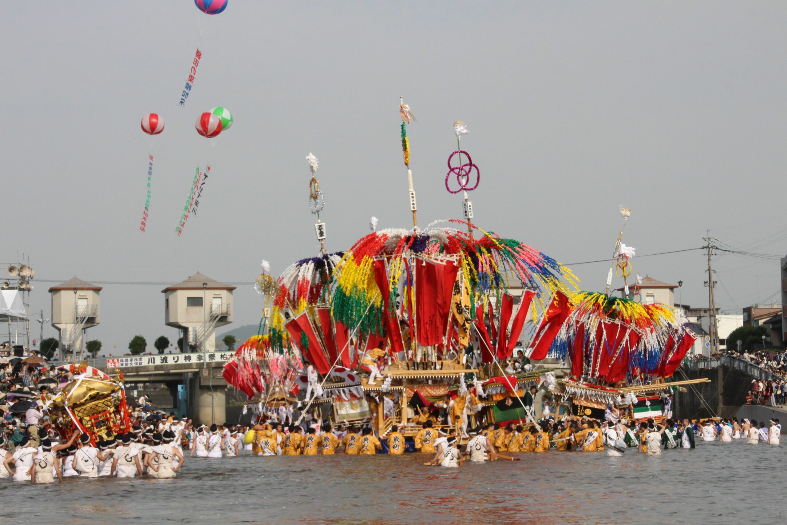 福岡県田川市にある風治八幡宮のお祭り「川渡り神幸祭(かわわたりじんこうさい)」。福岡県五大祭りの一つに数えられ、福岡県の無形民俗文化財第1号にも登録されています。