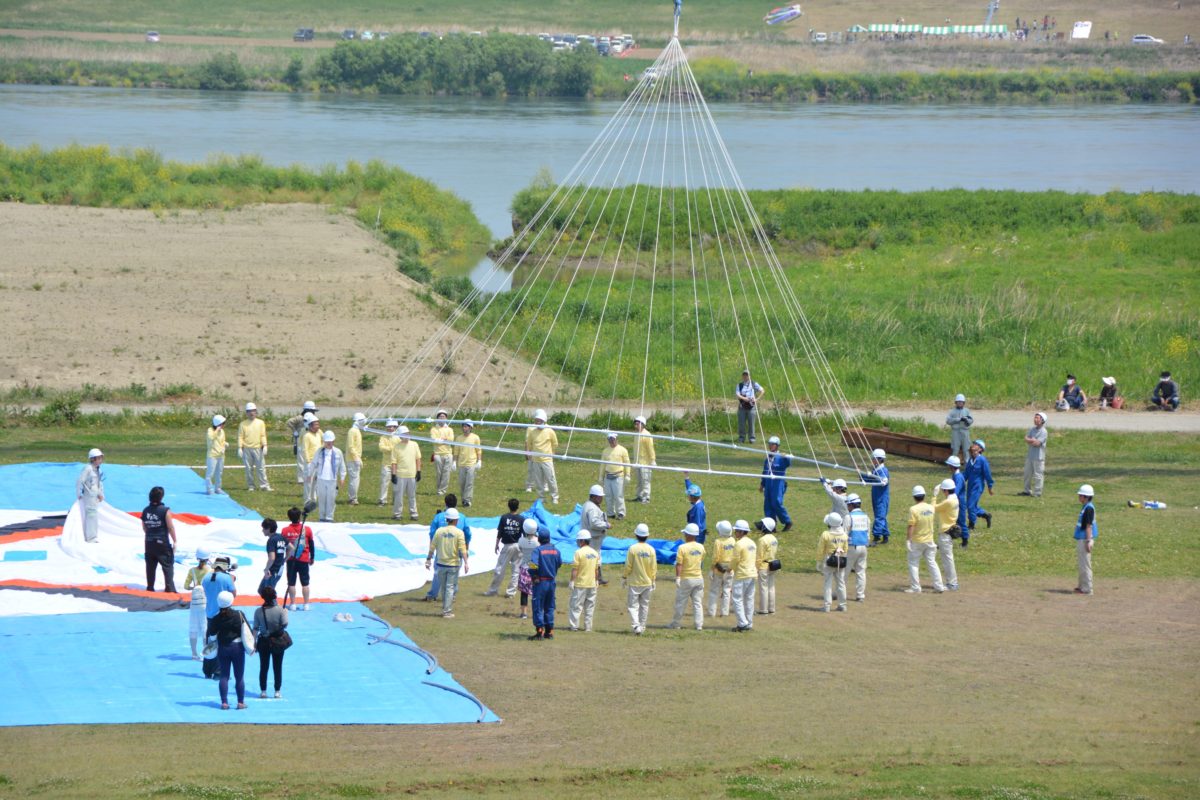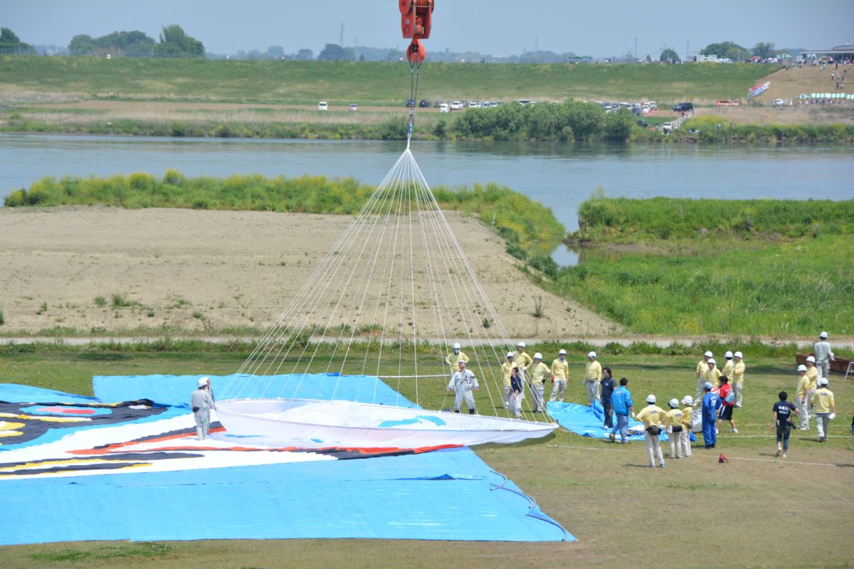 尾の先が地面から離れるとジャンボこいのぼりの空中遊泳が始まります。