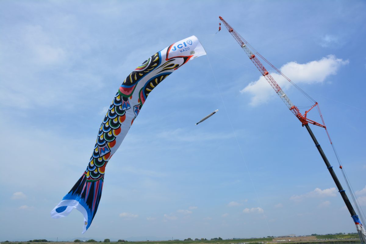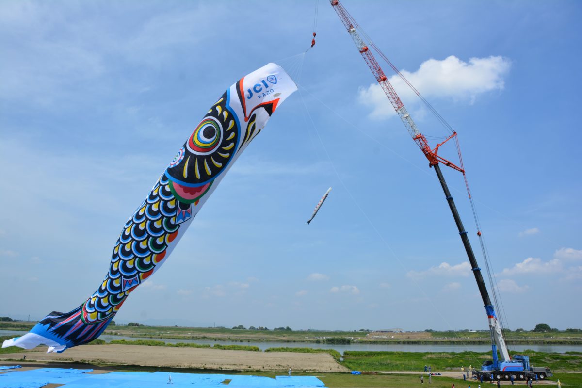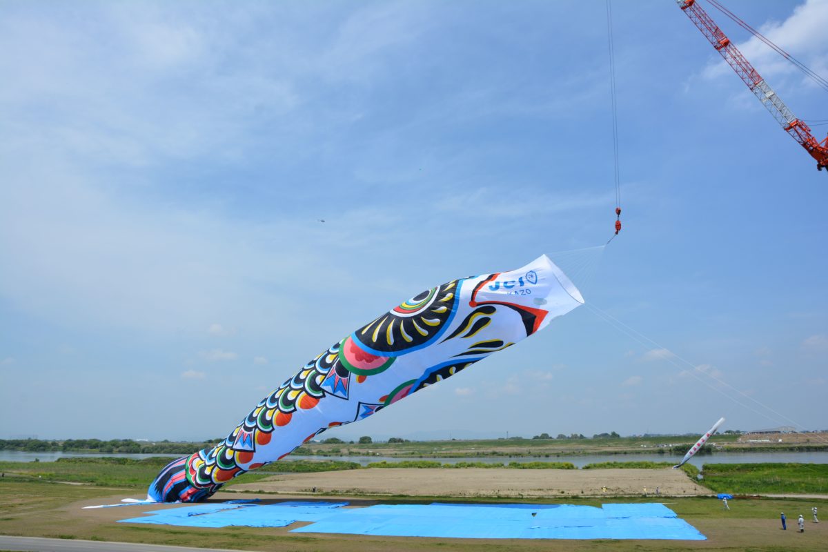 こいのぼりの生産量が日本一の加須の上空に舞うジャンボこいのぼり