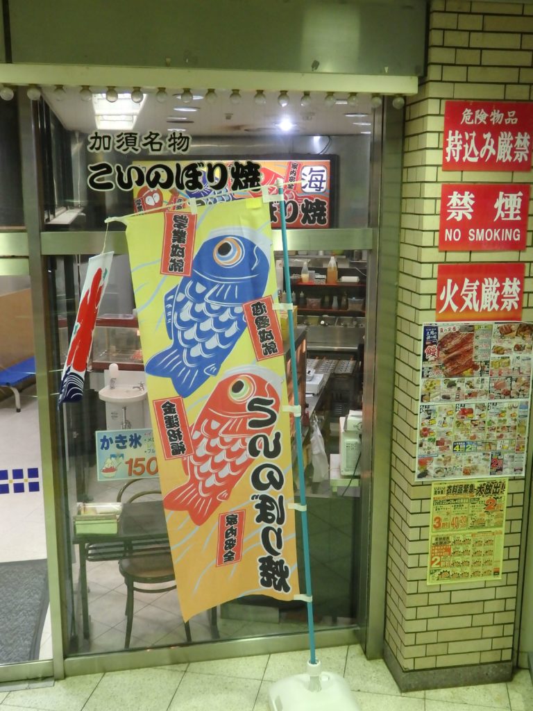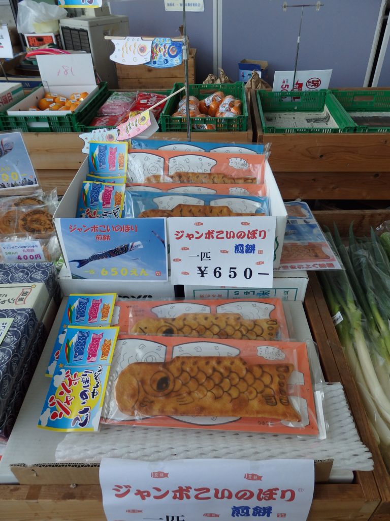 利根川河川敷緑地公園に隣接する加須未来館の売店で販売されるジャンボこいのぼり煎餅