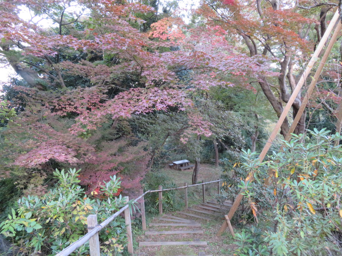 京王百草園では見渡す限りの紅葉を見ることはできませんが、「京王百草園紅葉まつり」の期間中には夜間のライトアップが行われるため、スポットごとに表情の異なる紅葉を楽しむことができます。