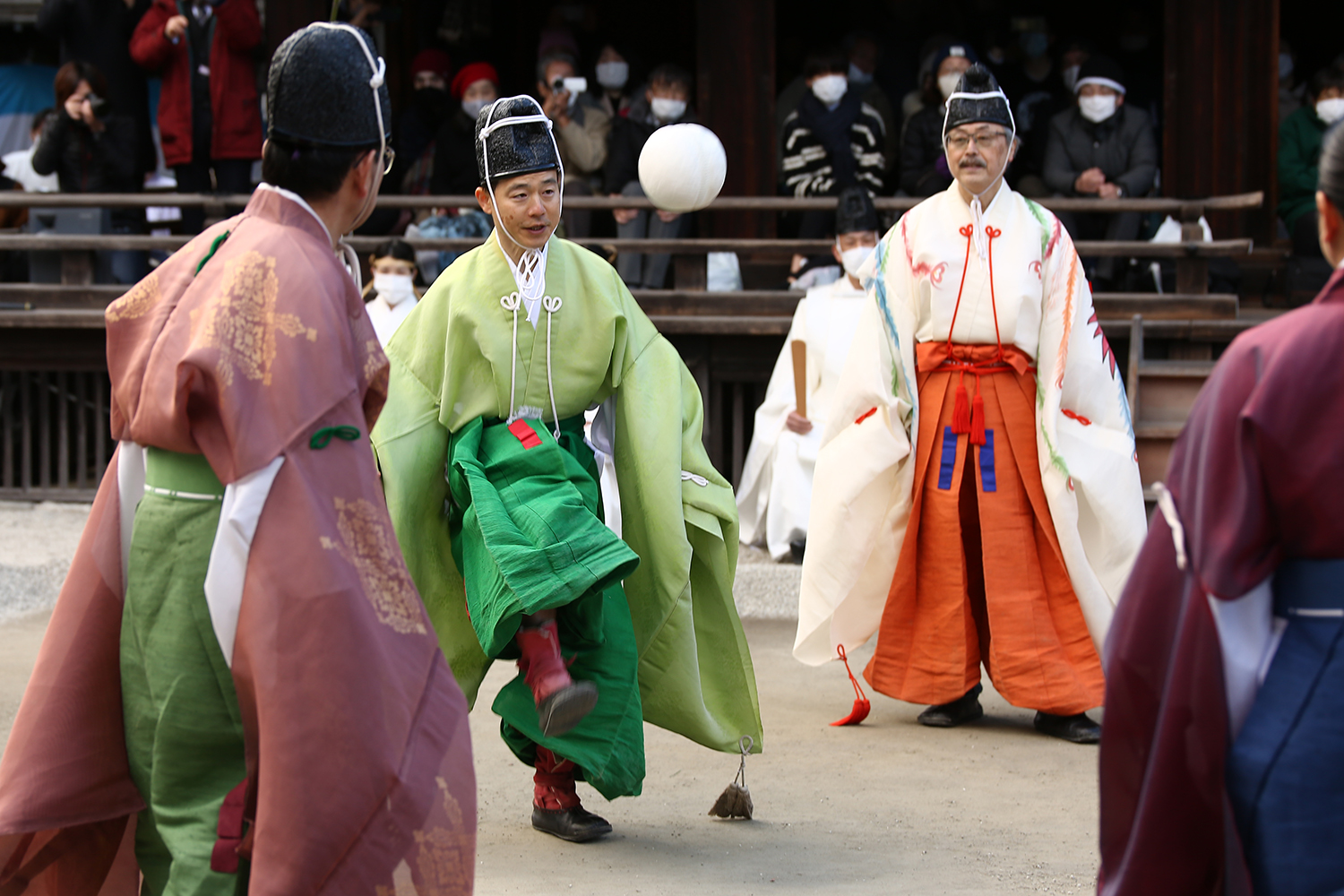 下鴨神社では毎年1月4日に「蹴鞠(けまり)はじめ」が行われます。
