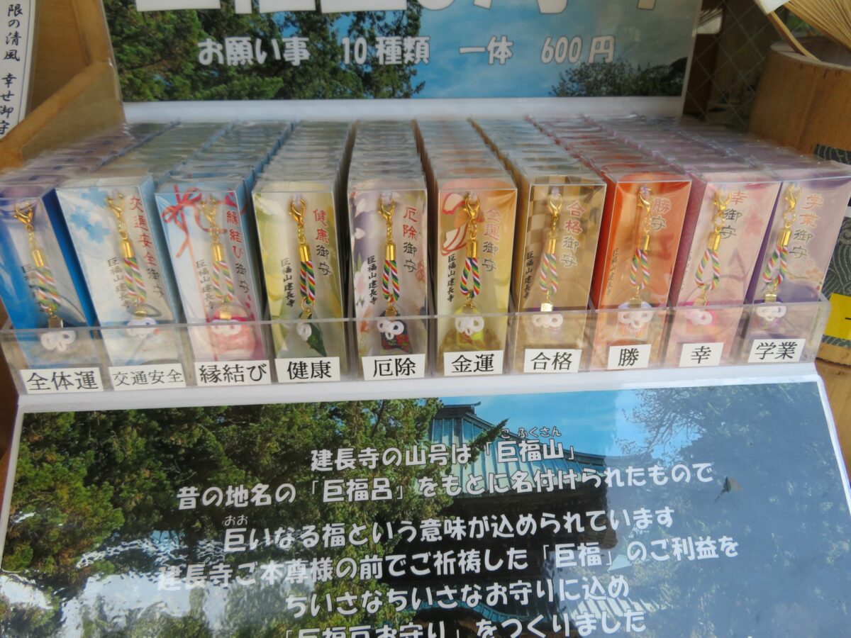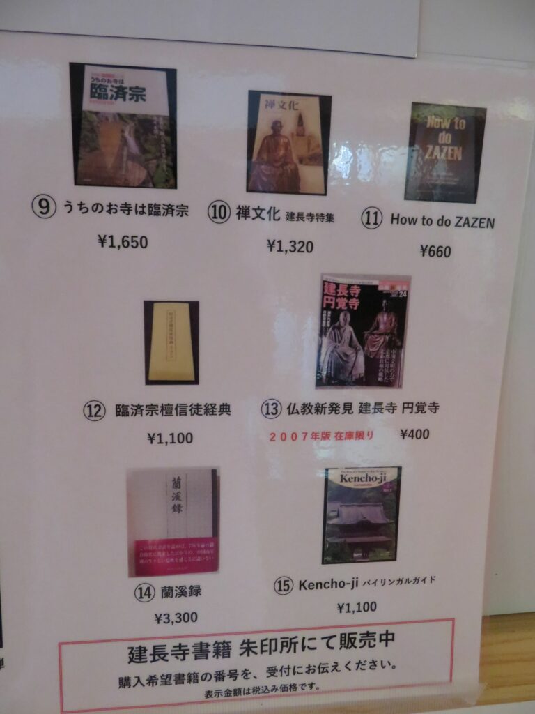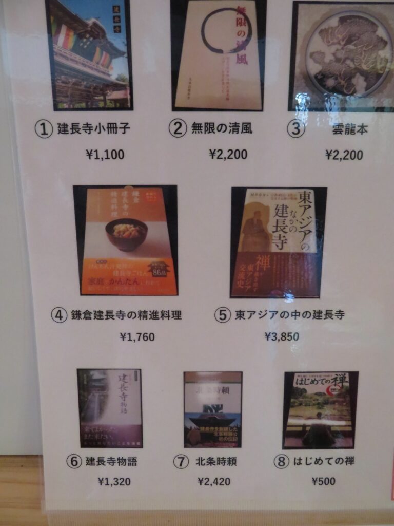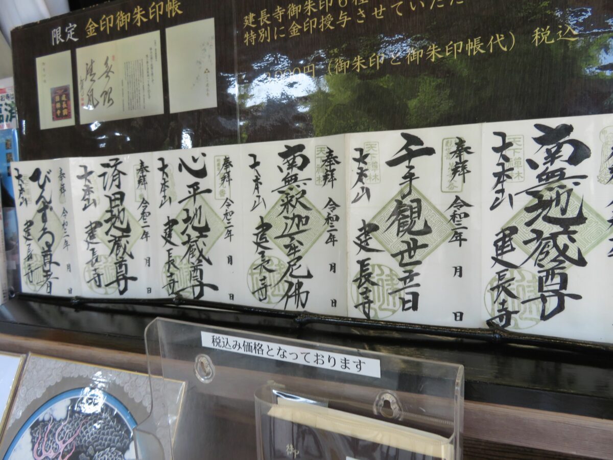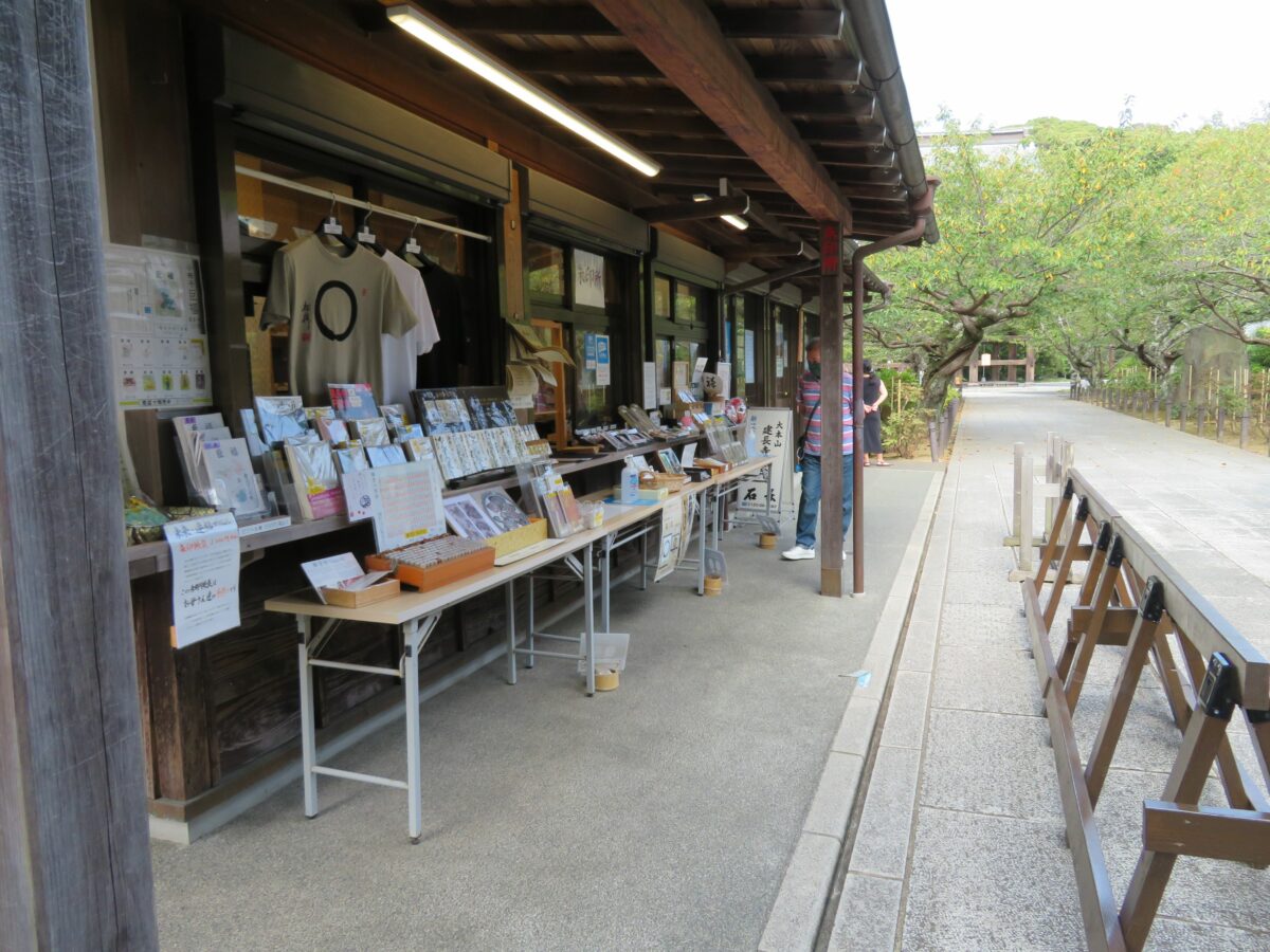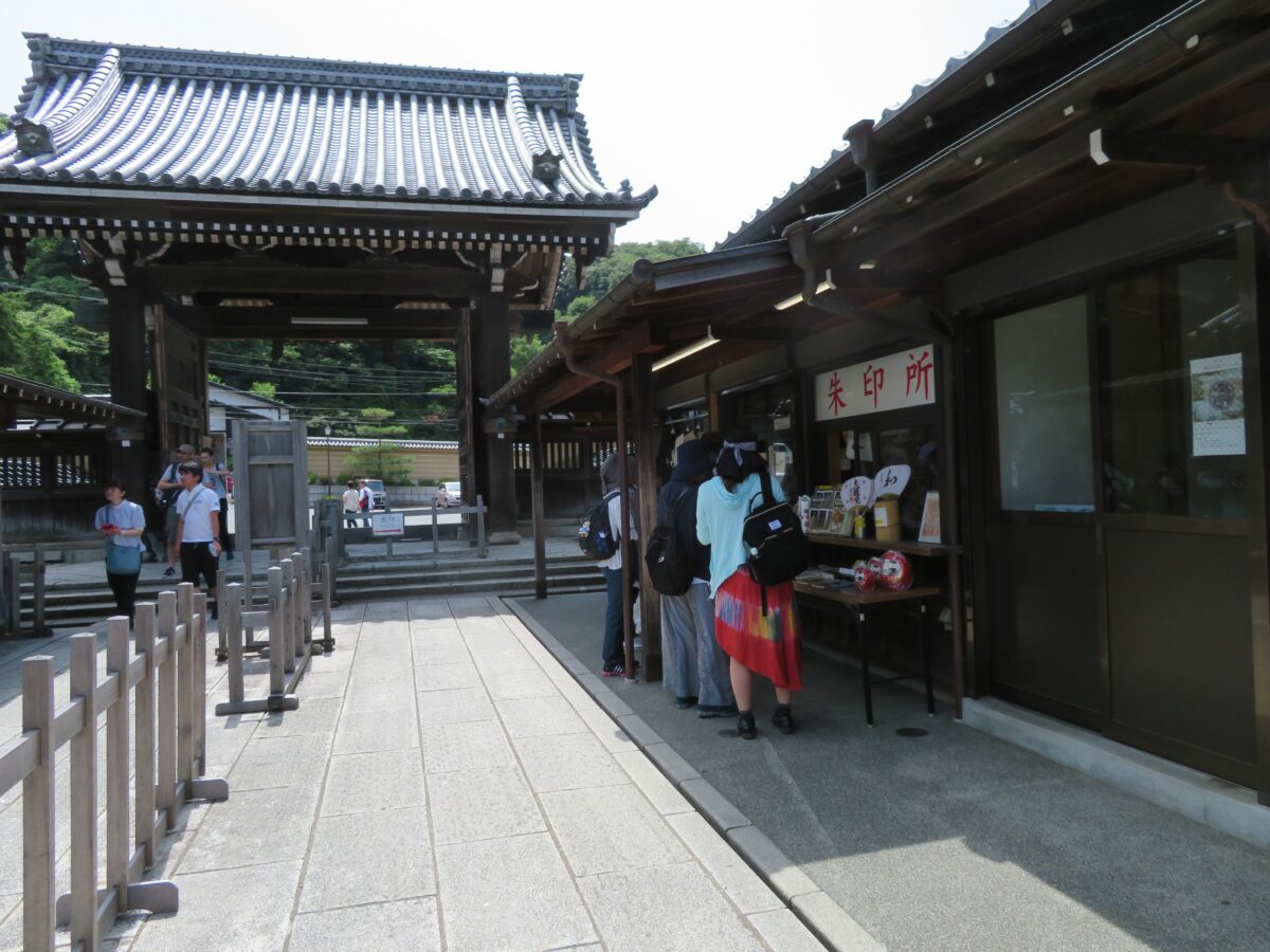 建長寺では正面玄関の総門に接するように御朱印所が設置されています。ここで御朱印を頂くことができ、オリジナルの御朱印帳も準備されています。お守りなどの授与品ばかりでなく、スナックなどの土産物や一般の書店では見かけない書籍なども並んでいます。