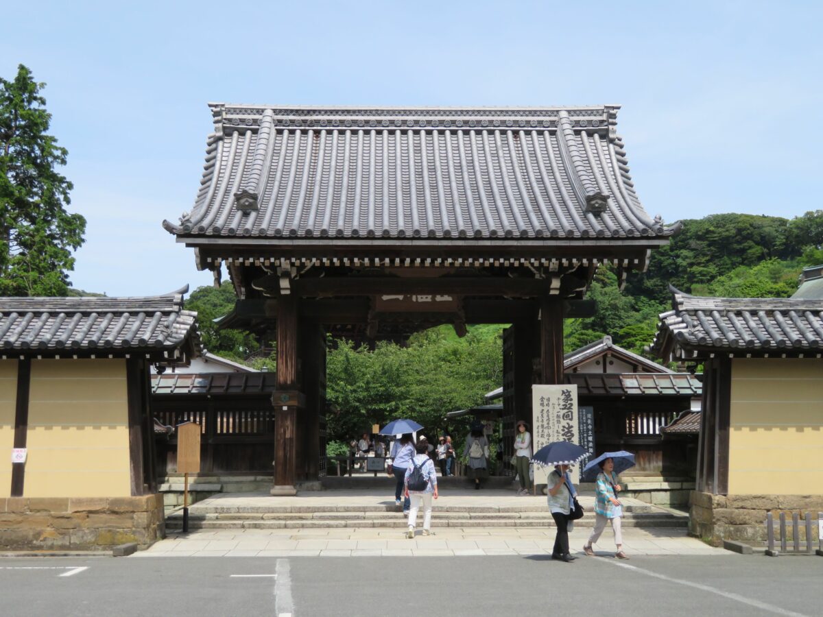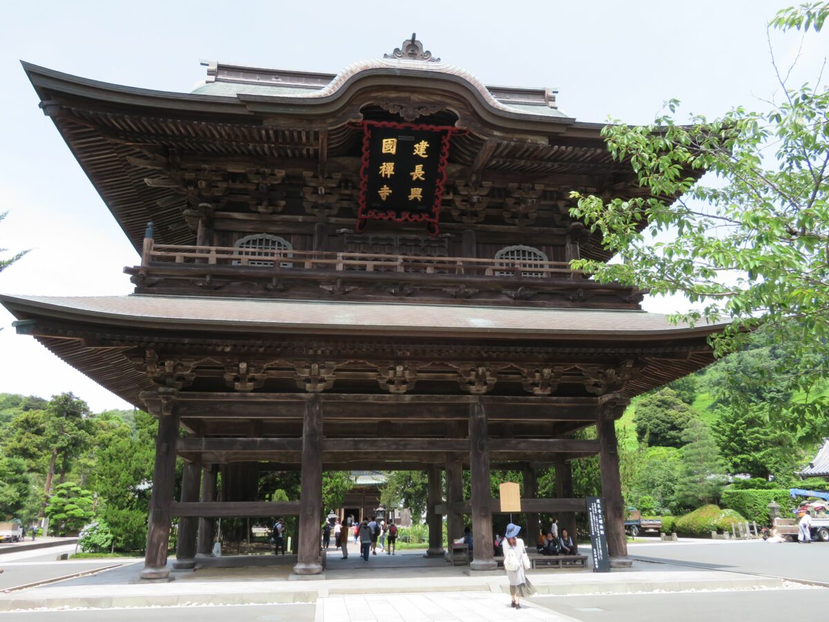 建長寺は鎌倉時代の1253年に、鎌倉幕府第5代執権の北条時頼によって創建されました。日本で最初の禅寺とされ、臨済禅のみの修行を行う専門道場です。中国の禅宗様式に基づき、総門から三門、仏殿、法堂、方丈が一直線に並んでいます。正面玄関の役割を担う総門は、京都の般舟三昧院に1783年に建立されたもので、1940年に移築されました。