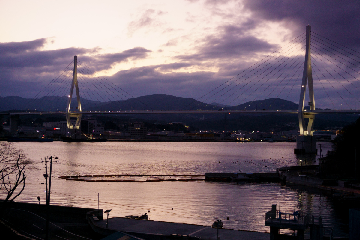 気仙沼湾を横断する気仙沼湾横断橋(三陸縦貫自動車道)。