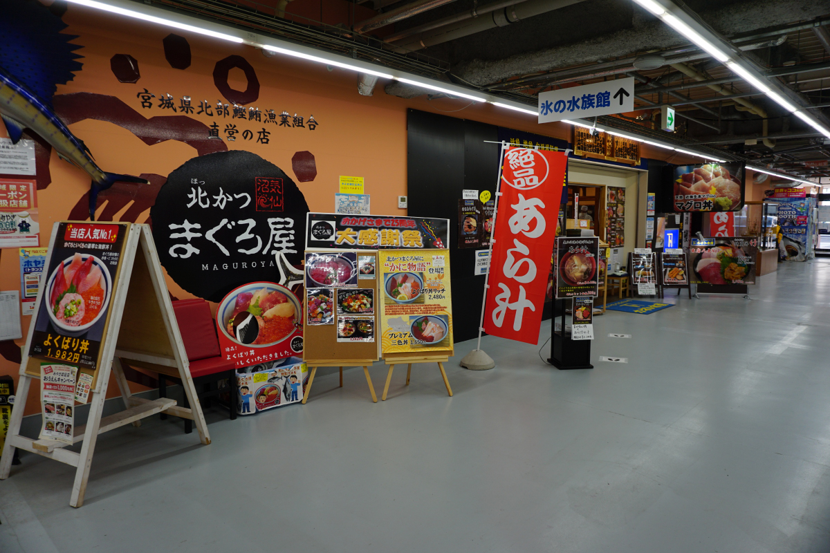 館内には海鮮グルメが並んでおり、その日水揚げされた新鮮なお刺身を食べることが出来ます。