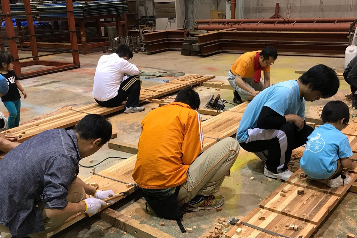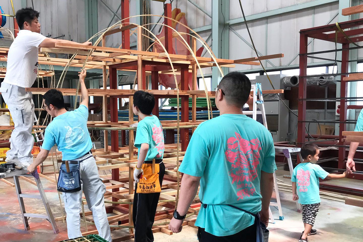 巨大燈籠には鉄骨や木、竹、布、電球などを用いて紀北町燈籠祭実行委員会を中心に地域住民が一体となり 約3ヶ月掛けて作られます。燈籠製作作業は月曜から土曜の19:30~21:30まで紀伊長島駅前のふれあい広場マンドロで行っており、子供からお年寄りまで、どなたでも参加できます。このお祭りはみんなで創り上げるお祭りなのです!