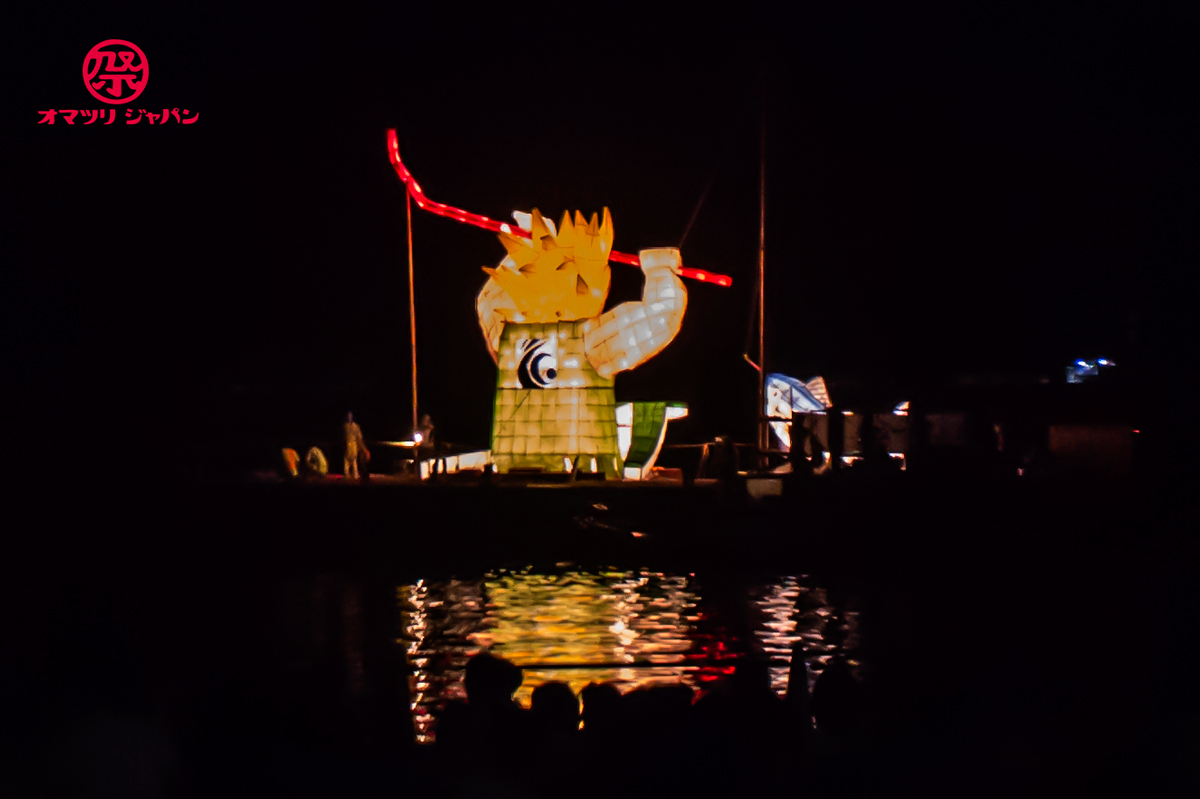 その後、1987(昭和62)年に当時の商工会青年部メンバーが中心になって地域を元気にする目的で働きかけ、以前よりもっと巨大な燈籠を制作し湾内に浮かべ、花火と競演させる現在の「きほく燈籠祭」を復活させました。