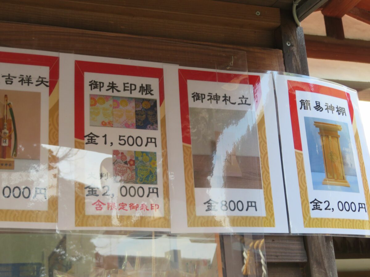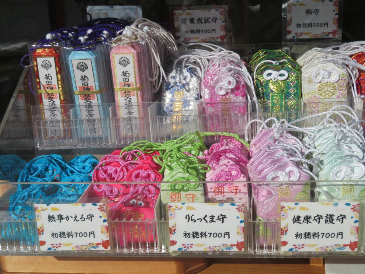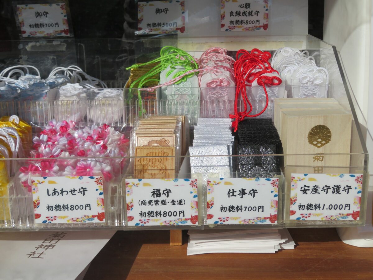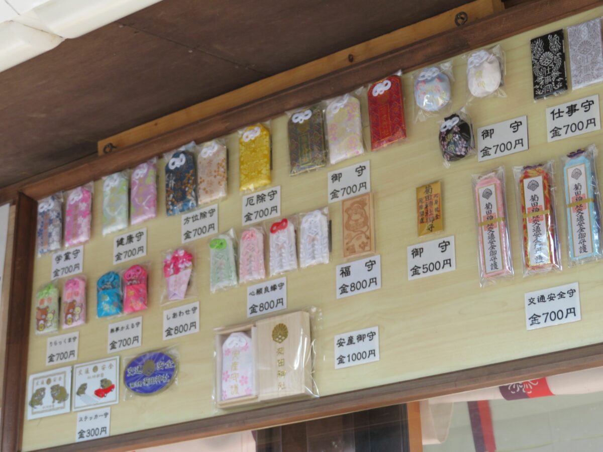 社務所の窓口には、お守りなどバラエティー豊富な授与品が並んでいます。