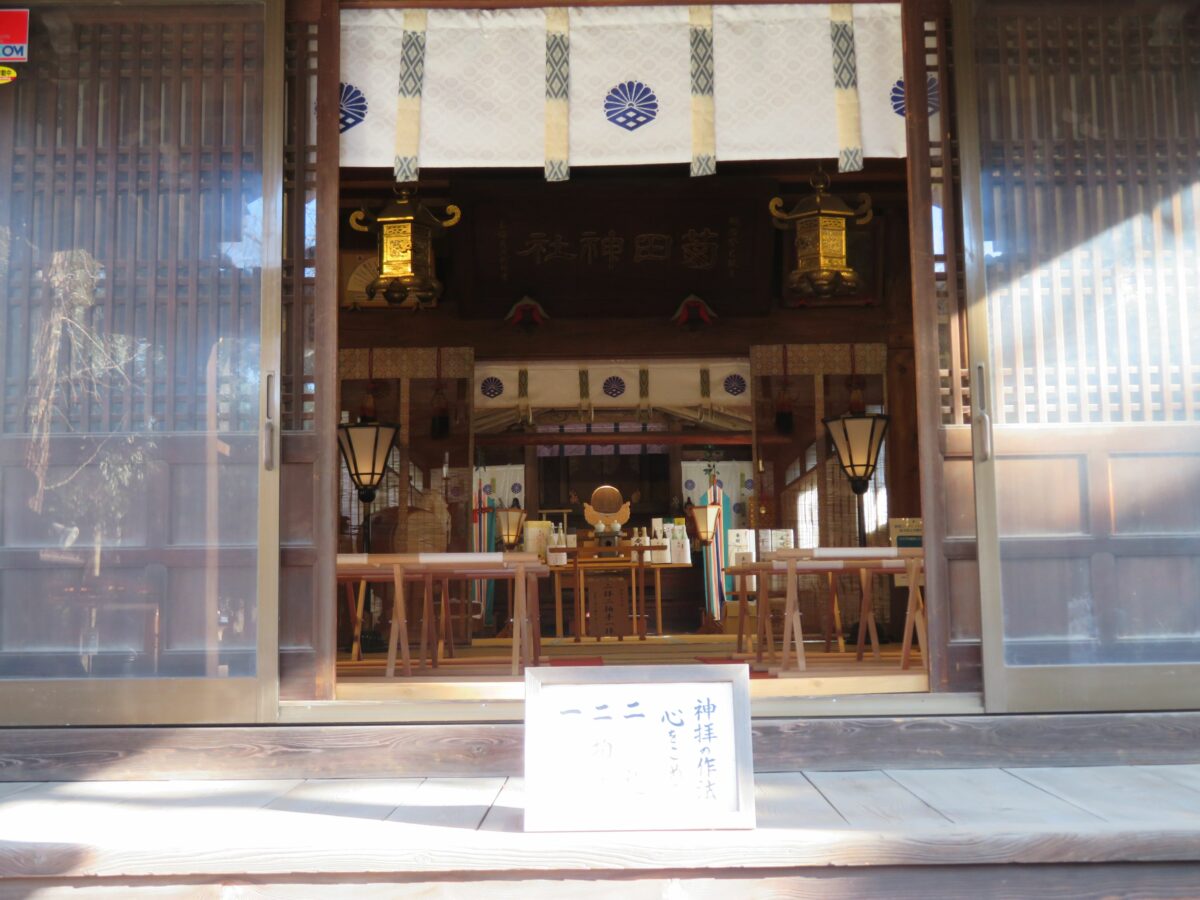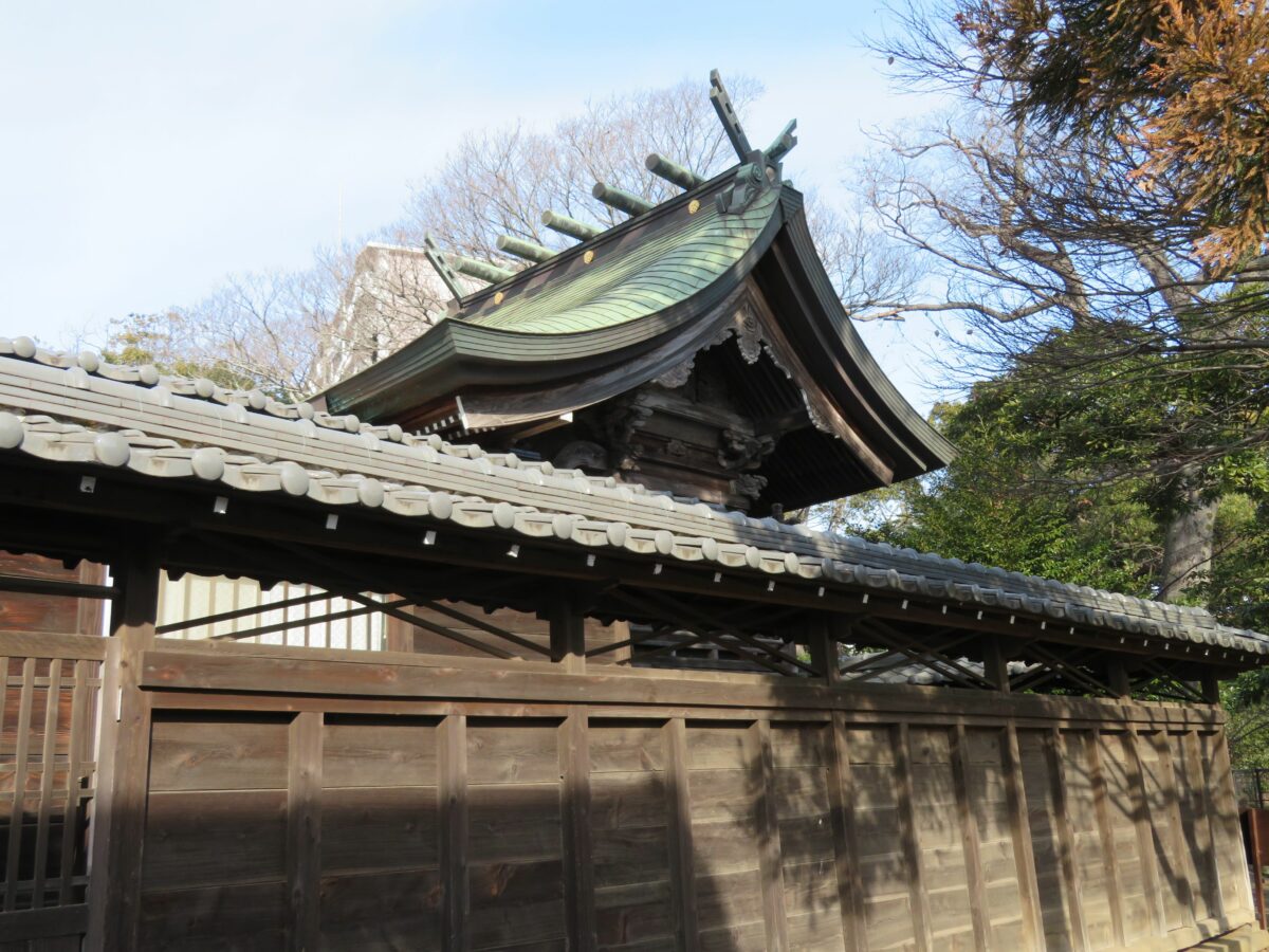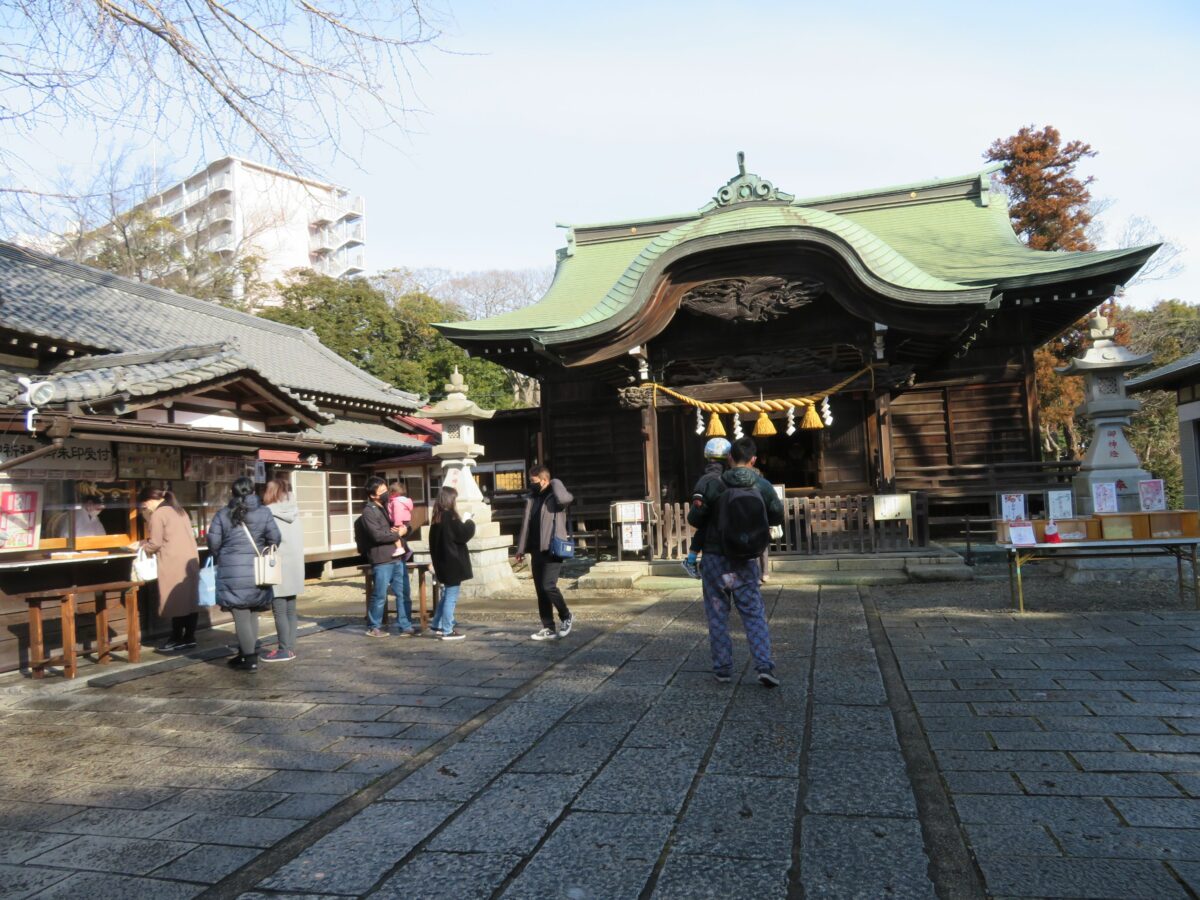 菊田神社は京成津田沼駅から東300メートル足らずのところに社殿を構えています。駅舎の北側の道案内に従って数分歩くと社号碑が神社の鳥居に導いてくれます。
