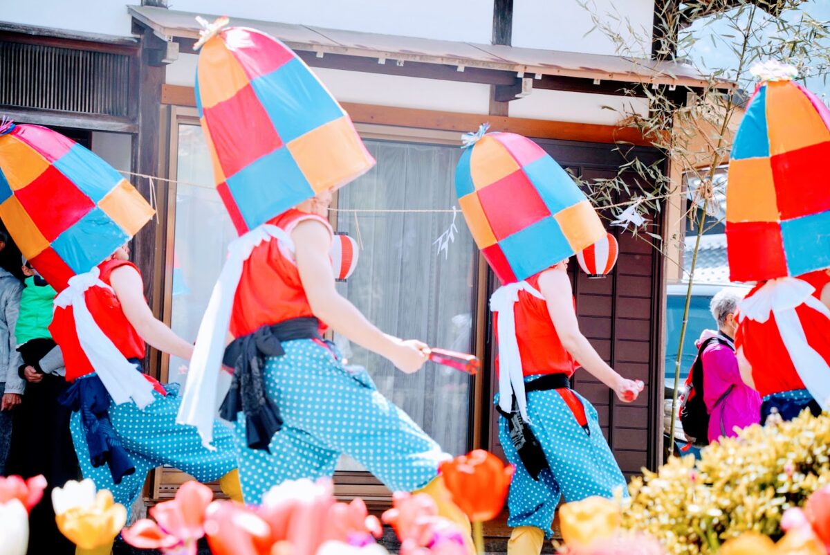 ちなみに、近隣の白川町の杵振り踊りとは、傘のカラーリングが異なります。