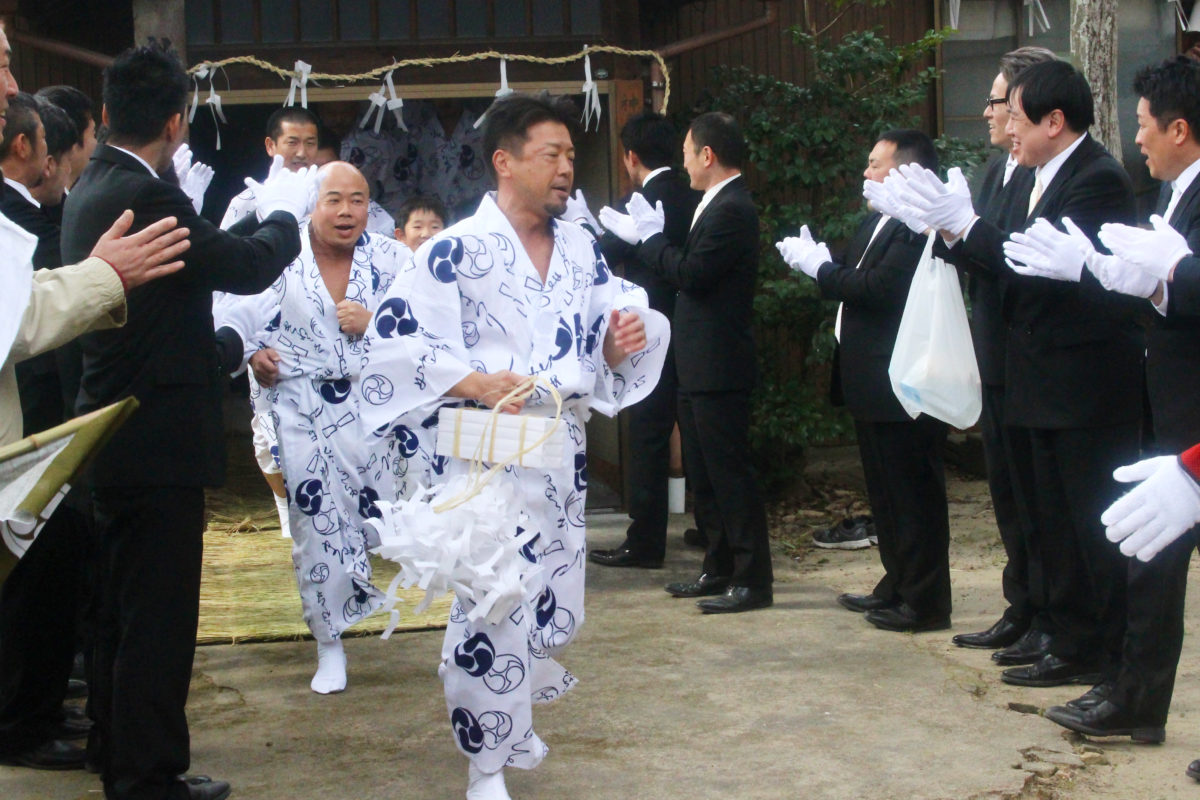 川祭りを終えた男衆は、社殿へと報告に戻ります。