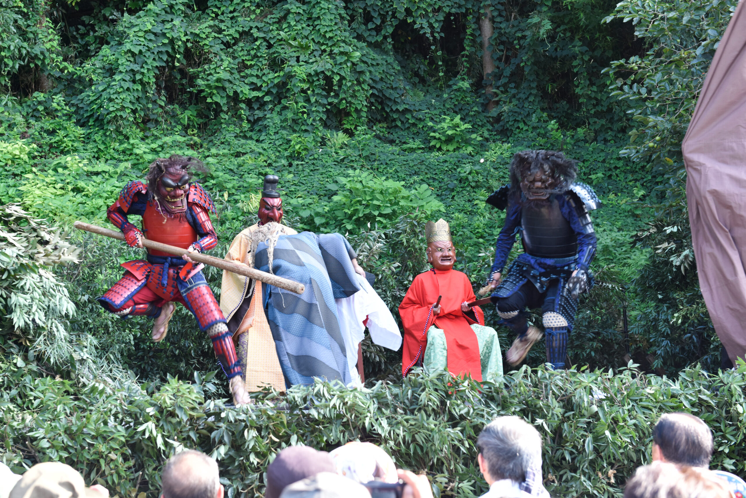 さて、7演目のうち最後の3演目「和尚道行―墓参―和尚物語」は現在、演じられていない。ただし、この演目はこれからご紹介する「鬼来迎の起源」と話の展開が同じと言われている。それを踏まえながら、演目の様子を想像していただけるとよいだろう。