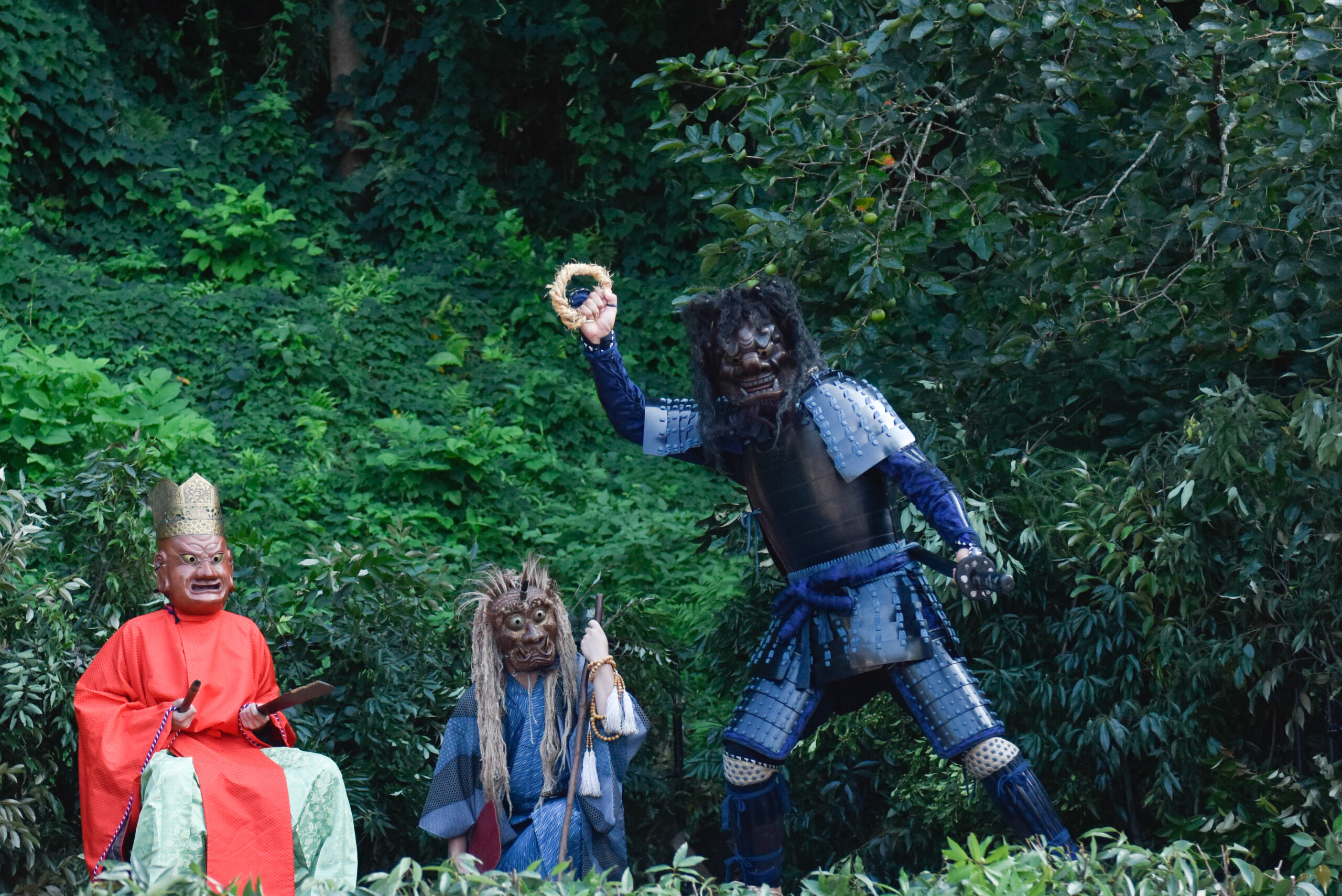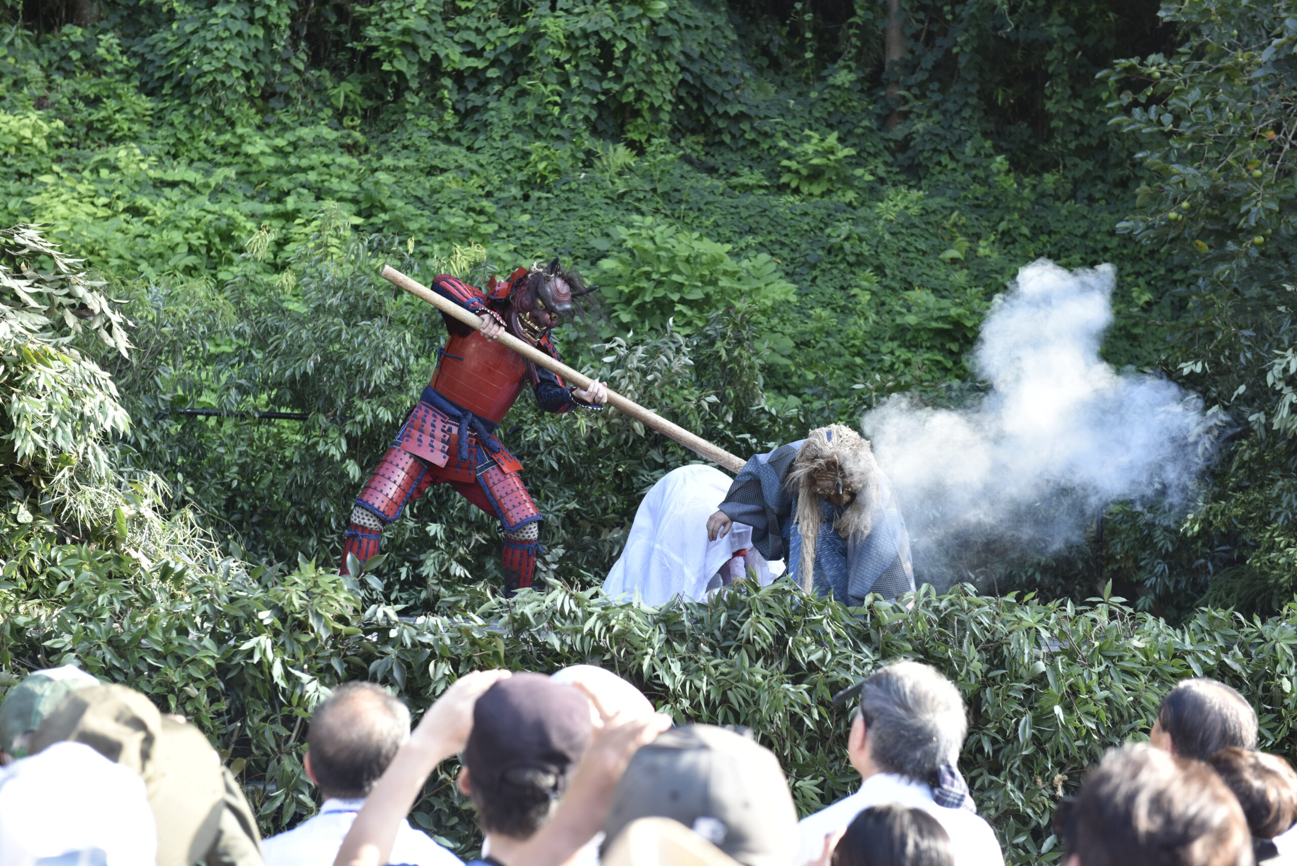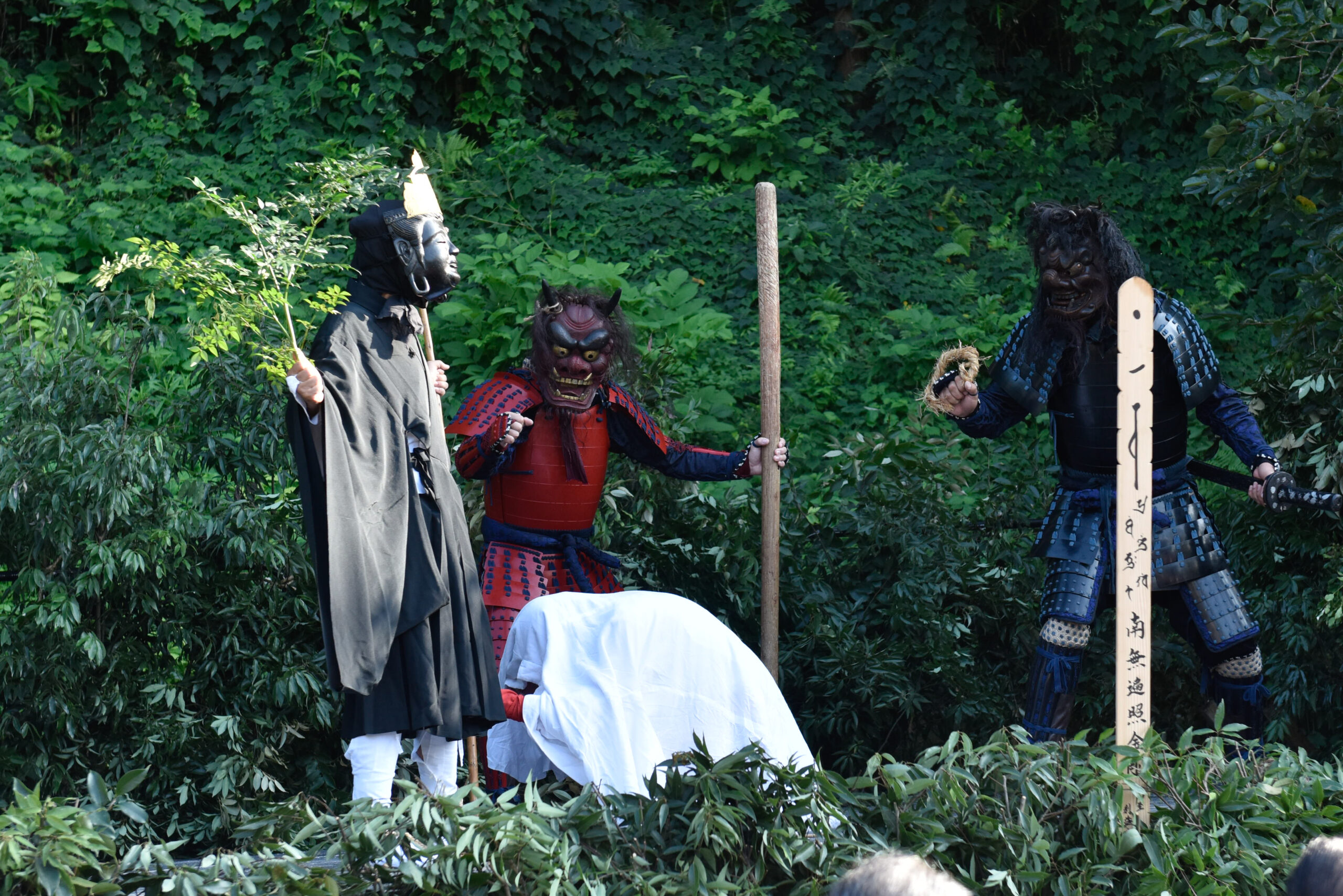 さて、7演目のうち最後の3演目「和尚道行―墓参―和尚物語」は現在、演じられていない。ただし、この演目はこれからご紹介する「鬼来迎の起源」と話の展開が同じと言われている。それを踏まえながら、演目の様子を想像していただけるとよいだろう。