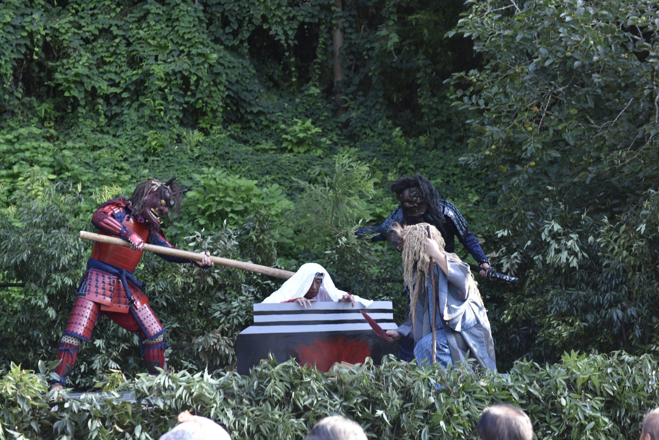 実際に身体的な所作として地獄の様子を詳細に想像したのだろう。例えばホッホッホーなどの鬼の叫び声はどのようにして成立したのかは気になるところだ。想像を膨らませながら地獄劇を眺めることは、スリル満点の恐ろしさの裏にある、何か得体の知れない沼に我々を導いてくれる。