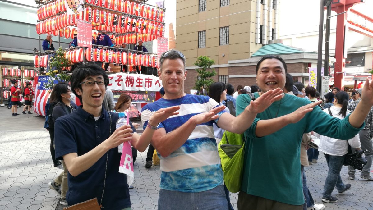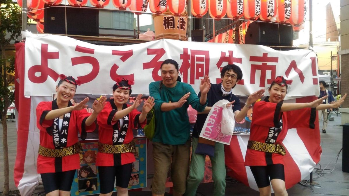 こちらのステージも、もちろん楽しかったですがbon dance(盆踊り)好きとしては、この時間を利用して周りにいた海外の方々と、ちょいと話し始めてみました。日本語ペラペラで助かった…。現在は別の所に住んでいるものの、過去に桐生市に在住したこともあったそうで、今日はこのイベントのために駆け付けたとのこと。せっかくなのでハイ、ポーズ。