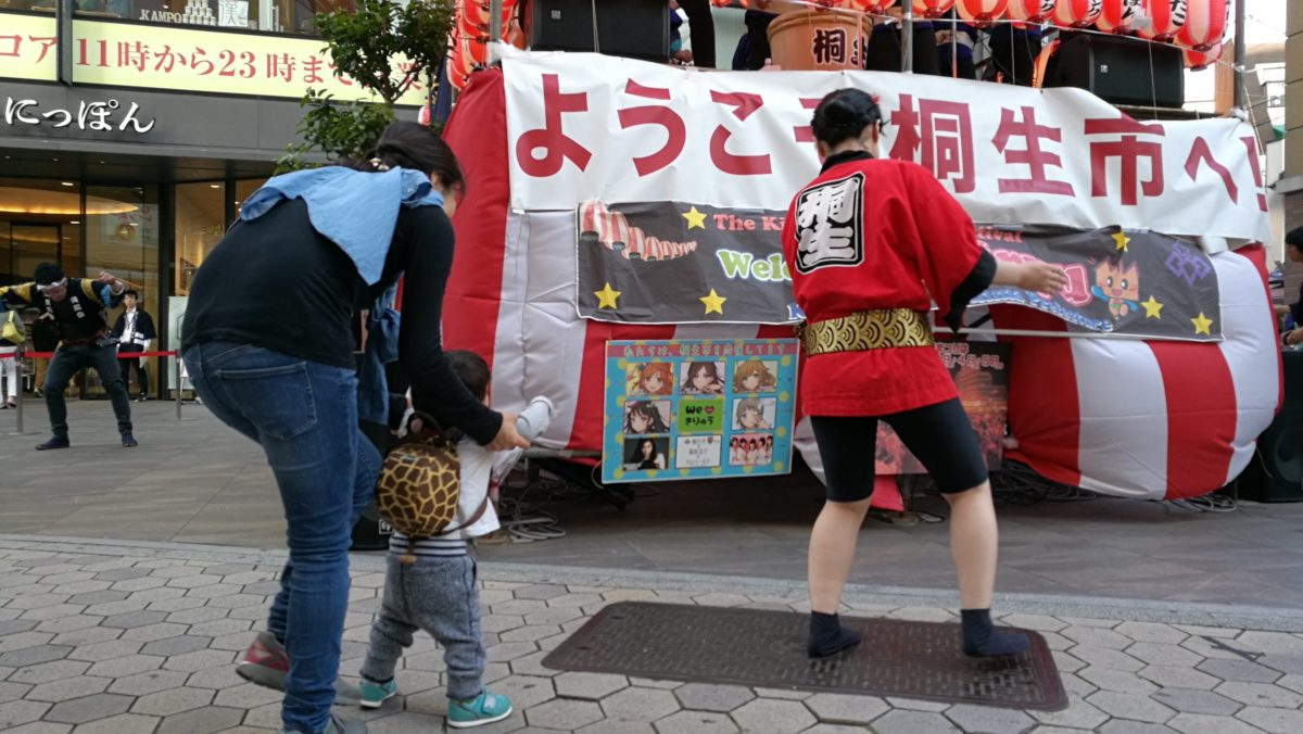 本編の桐生八木節の上演時間では、おそろいの衣装を着た地元の方による演舞があり、その後に一般参加タイムで、みんなで踊る、という段取り。もちろん生歌・生音ですもんで、私のように「行きますよー」とハイハイ参加する人ばかりではありません。が、今回の踊りは桐生八木節のみ。だんだん我慢できなくなってきた人が途中から入る、このハードルの低さが素敵!時間帯で人は次々入れ替わるものの、色々な方が体験します。