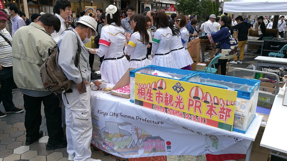 盆踊りだからとあなどるなかれ。踊りって、水分が面白いくらい飛びますからね。今回は、桐生市の観光PRブース内に、給水所が設置されていました。その隣には、地元群馬の「桑茶」の給茶所も。こういう地元アピールは嬉しい!