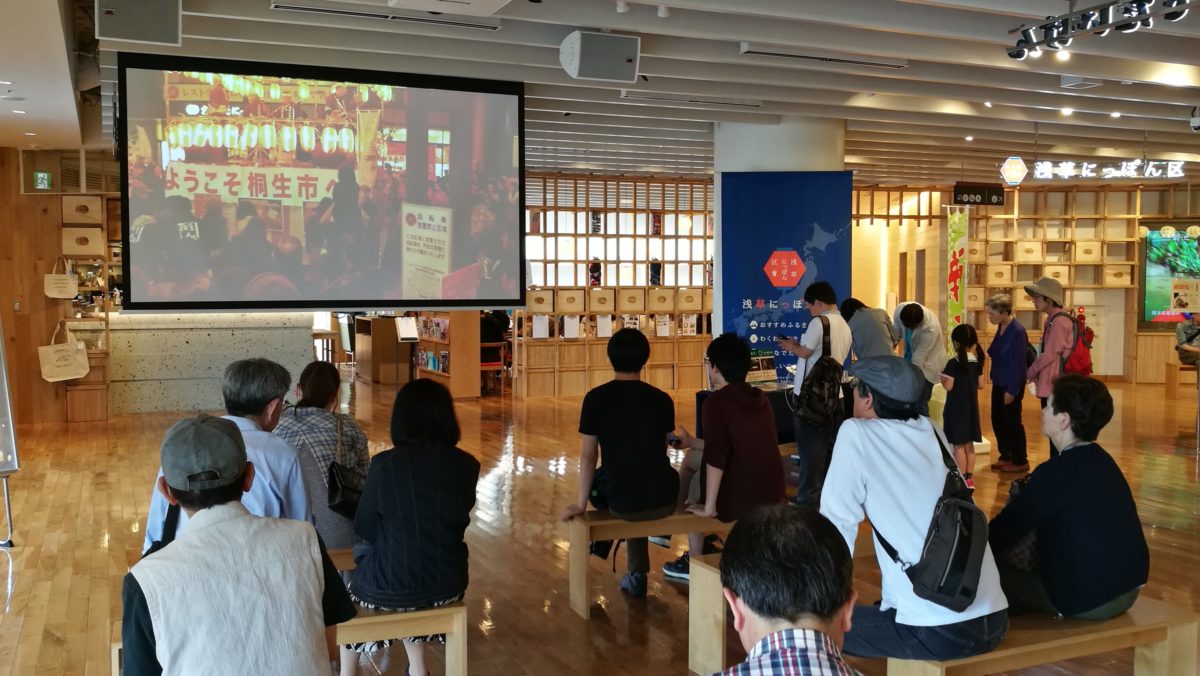 踊りに集中しすぎて他が見えなくなる前に、会場である「まるごとにっぽん」を見学。建物内では8月に開催される桐生八木節まつり本番の様子を動画で配信していました。