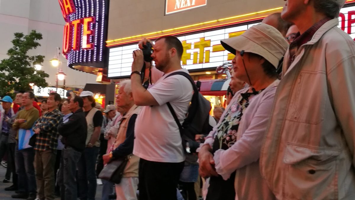 今回、浅草という土地柄か、海外の方が本当に多かったです。そこで皆さん、どんな画像を収めているのか、撮影している人を撮影してみました(傍から見ると物凄い怪しいですが目立たないように…)。