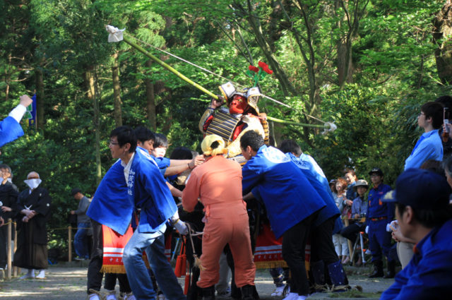 五穀豊穣を祈って、走馬・神幸式・神馬式・牛乗式・九遍式、流鏑馬式などの一連の神事(まさに神事の宝石箱や!)が厳かに行われる下村賀茂神社の春祭(加茂祭)。中でも、田の神が牛をひざまずかせることでこの地に留まり五穀豊穣をもたらすという意味を持つ「牛乗式」は、日本に残る唯一の奇祭とされています。もちろん、神事のラストを飾る、参道を疾走する馬上から的をめがけて矢を放つ「流鏑馬式」も必見です。