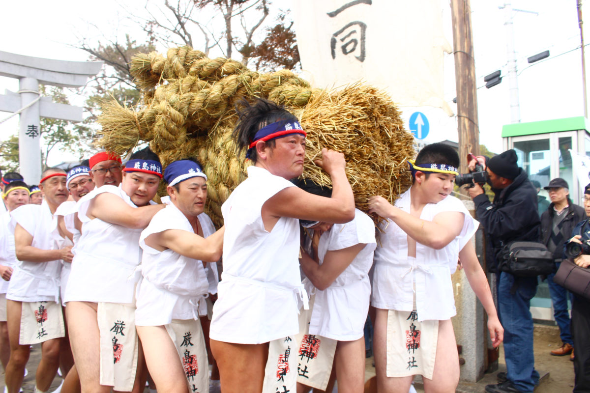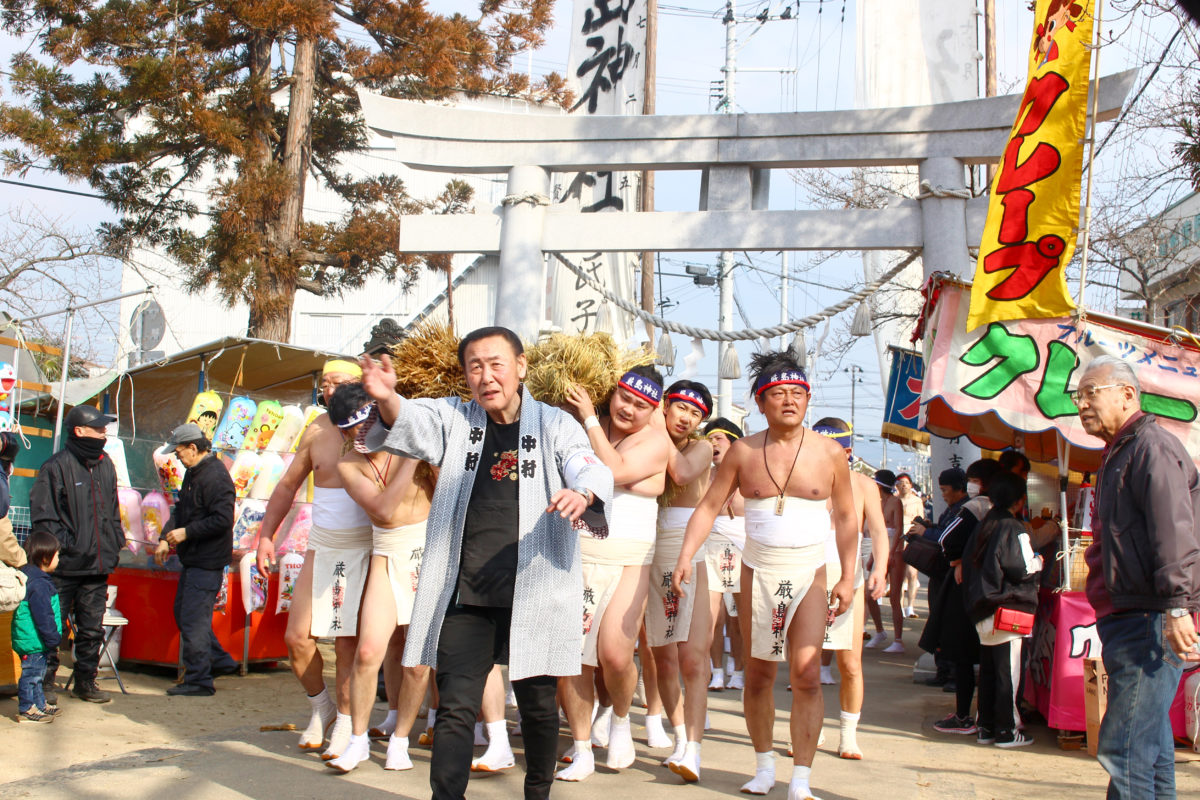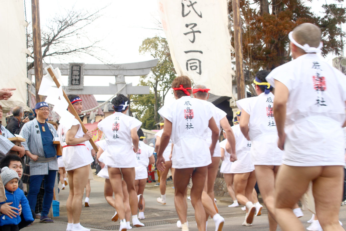 ふんどし一丁、神社へと向かう姿が勇壮ですね!