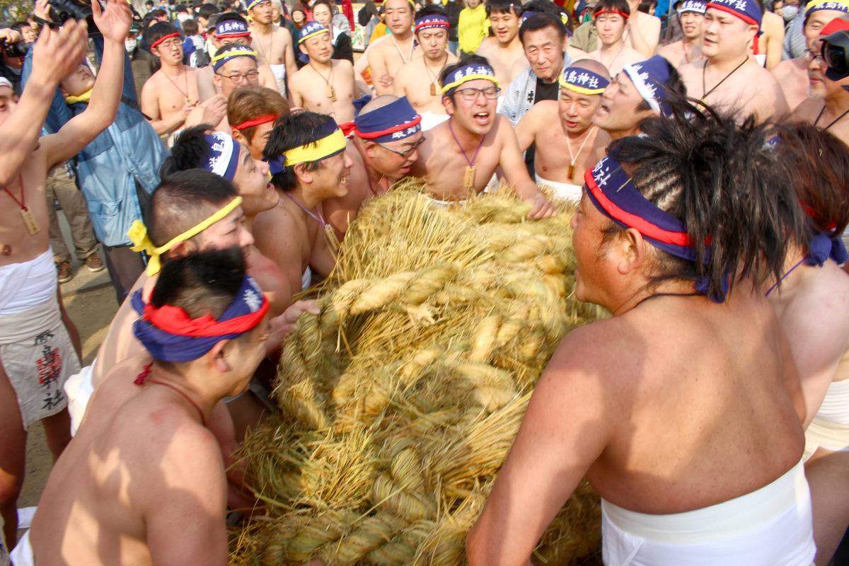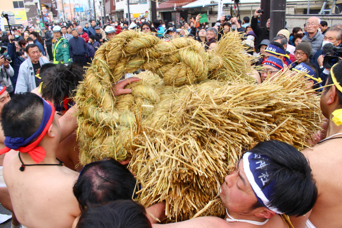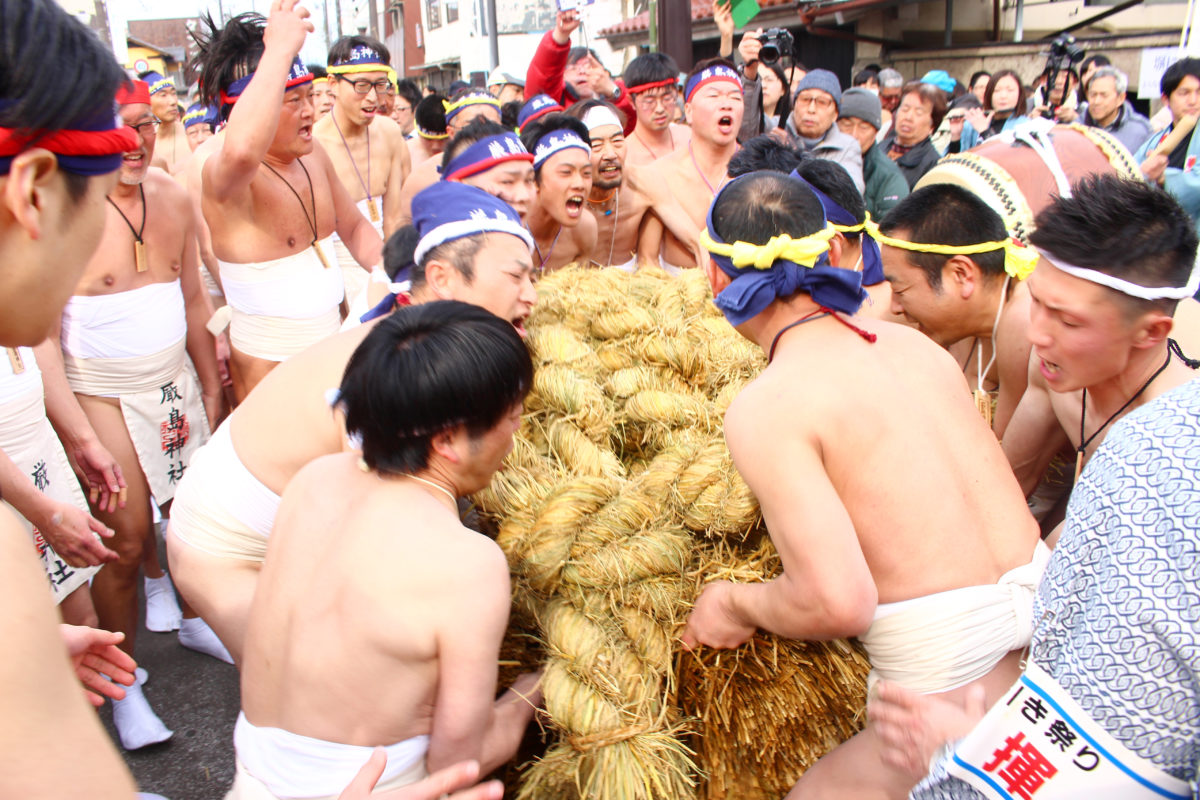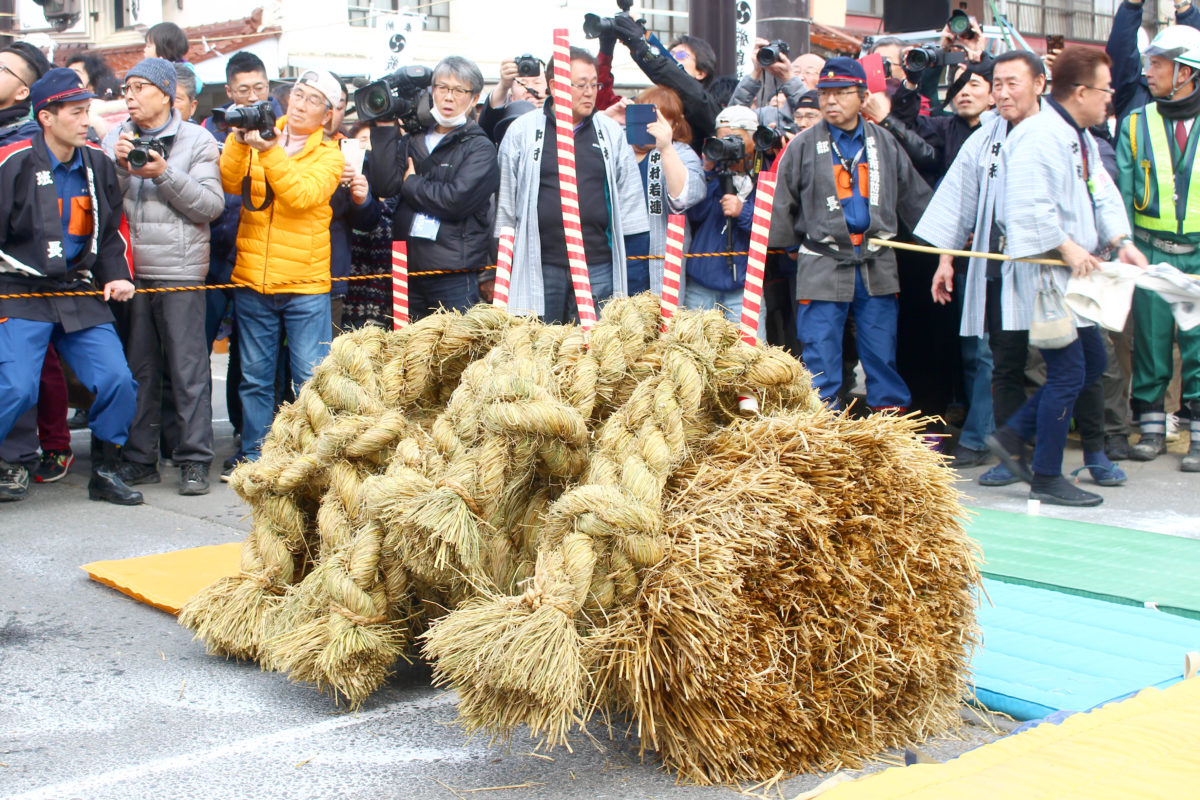 “つつこ”とはなんぞやと思った方もおられると思いますが、その正体は俵です。そしてこのつつこ引き祭りで登場する”つつこ”は直径1.5m、800kgもあるとてつもない大俵。この”つつこ”を激しく引っ張り合うふくしまの奇祭として、「つつこ引き祭り」は知られています。