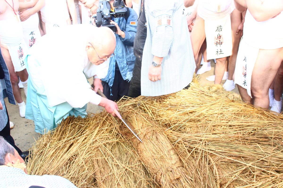いよいよクライマックス!上・内・下の3組に分かれて、自陣の決勝点目掛けてつつこを引き合う様子。この間にも、お米はお餅に変化し続けているのだろうか?この戦いの後、最後に神主さんがつつこを切り、中身が登場するそうです!#奇祭 #祭り #つつこ引き祭 #伊達 #裸祭り #お餅 #ふんどし pic.twitter.com/T0kW0A19vt