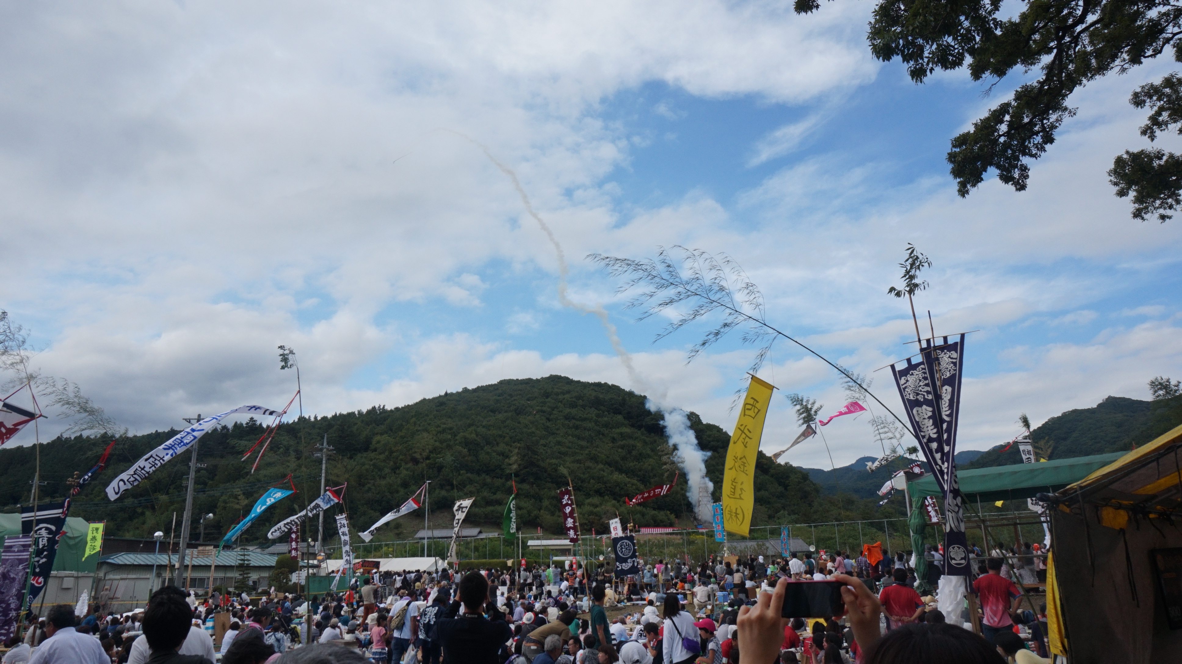 Q:10月に行われる、竹筒に黒色火薬を詰めて打ち上げ、上空で傘が開く仕掛けの「和製ロケット」を天高く打ち上げる奇祭とは? 正解はコチラ↓