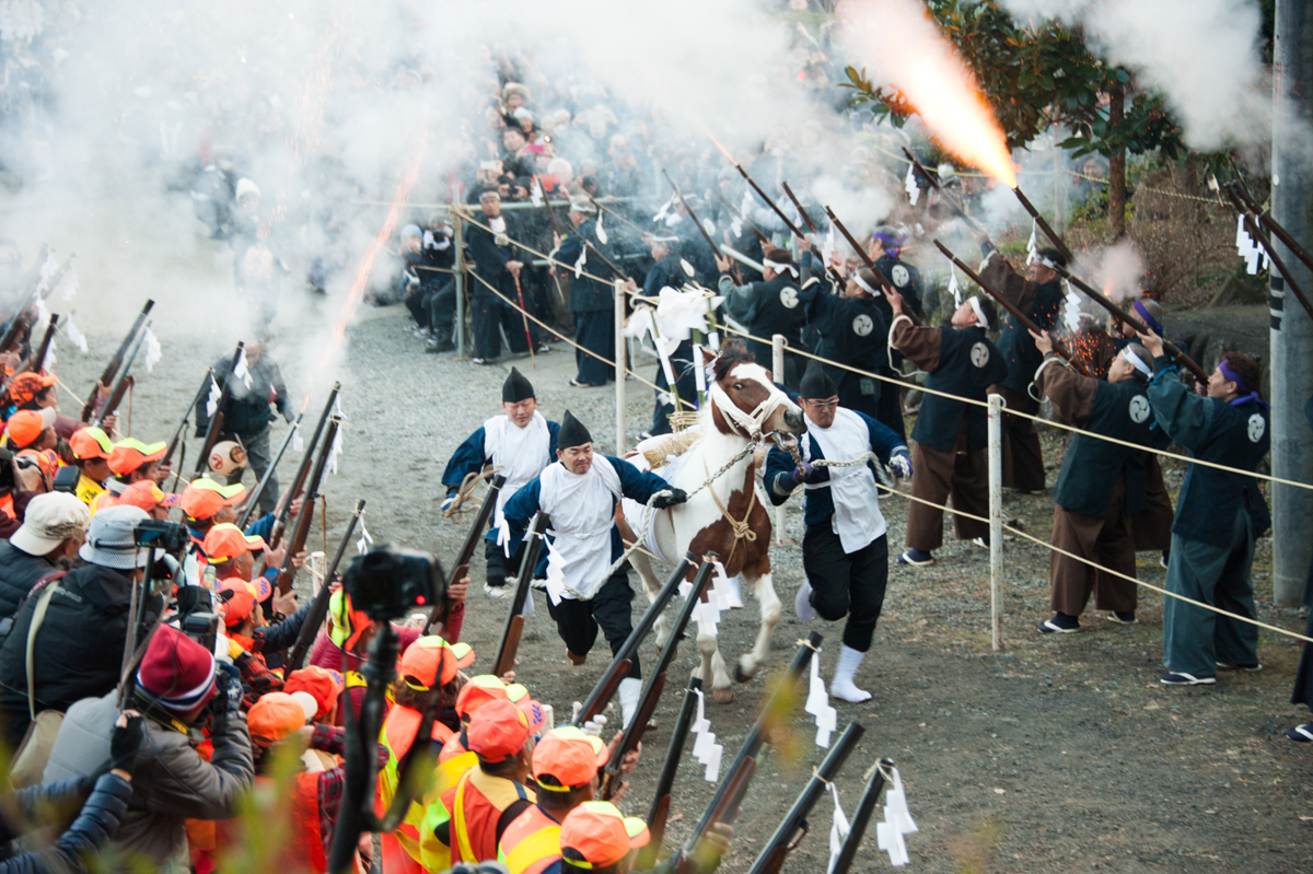 埼玉県・秩父地方において1年の締めくくりとなる「小鹿野の奇祭」。12月8日は歌舞伎奉納や屋台、笠鉾の曳きまわし、9日には歌舞伎奉納、笠鉾や屋台の曳きまわし、火縄銃の演舞、神楽奉納などが行われるという豪華なラインナップ。特に9日に行われるメインの「お立ちの神事(銃火奉納)」では、参道の両脇から銃声がパンパンパンと打ち鳴らされる中、神馬が社殿への石段を一気に駆け上ります。祭の最後は花火でフィナーレ。