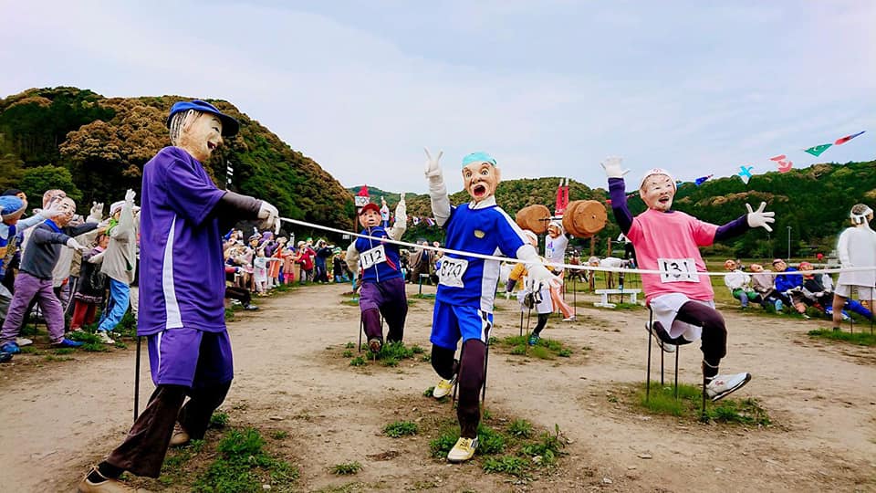 天草市・下島の中央部の農林地帯「宮地岳」では毎年、春になると『かかし村』が出現。3月末の開村式の後、どこか懐かしい昭和感ある里山に大量のかかしが並ぶ「かかし展示」が行われます。第7回目となる今年の展示のテーマは「2020かかし村オリンピック」。かかしの数も増えに増え、もうすぐ町民の人口超え間近(!)の470体のかかしが展示されます。